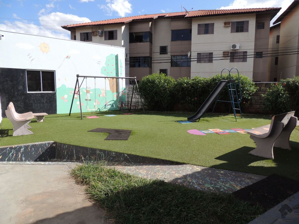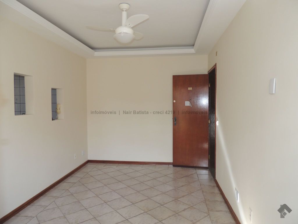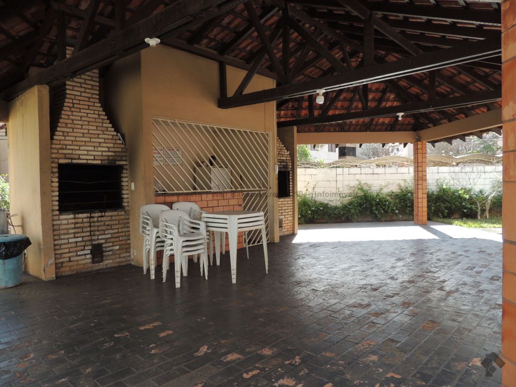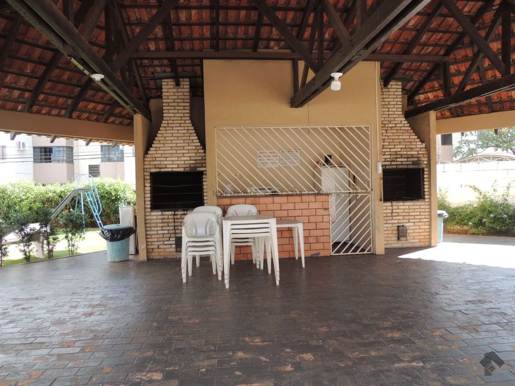 Unidade composta por sala de estar com sacada, um apartamento com ventilador de teto, dois quartos sociais com ventilador de teto, um banheiro social, cozinha, área de serviço e uma vaga de garagem. O condomínio oferece piscina e quiosque com churrasqueira.
