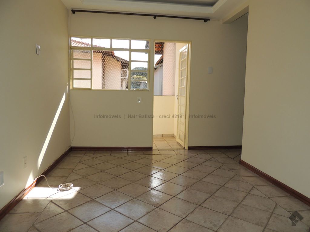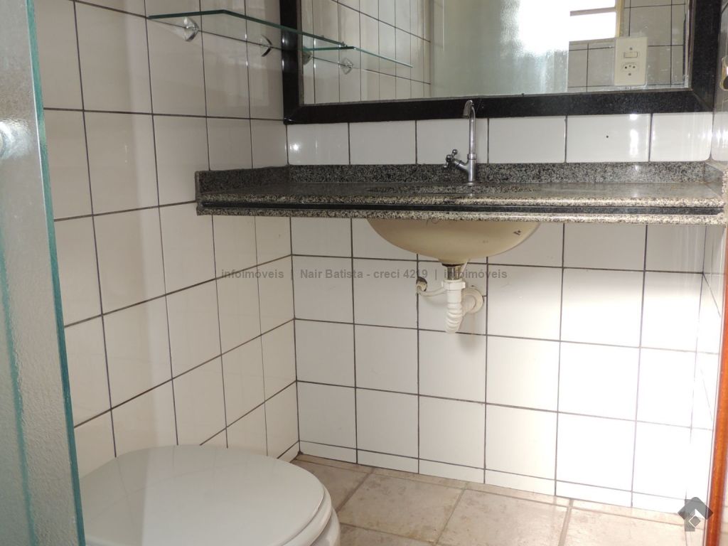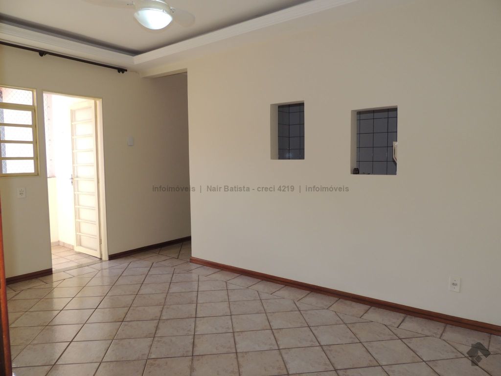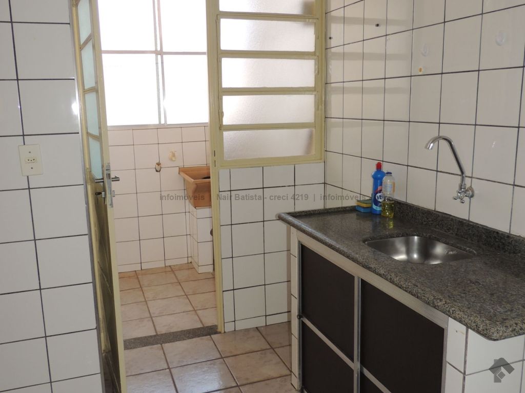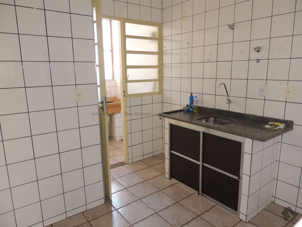 Unidade composta por sala de estar com sacada, um apartamento com ventilador de teto, dois quartos sociais com ventilador de teto, um banheiro social, cozinha, área de serviço e uma vaga de garagem. O condomínio oferece piscina e quiosque com churrasqueira.