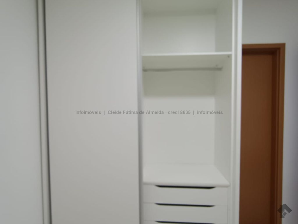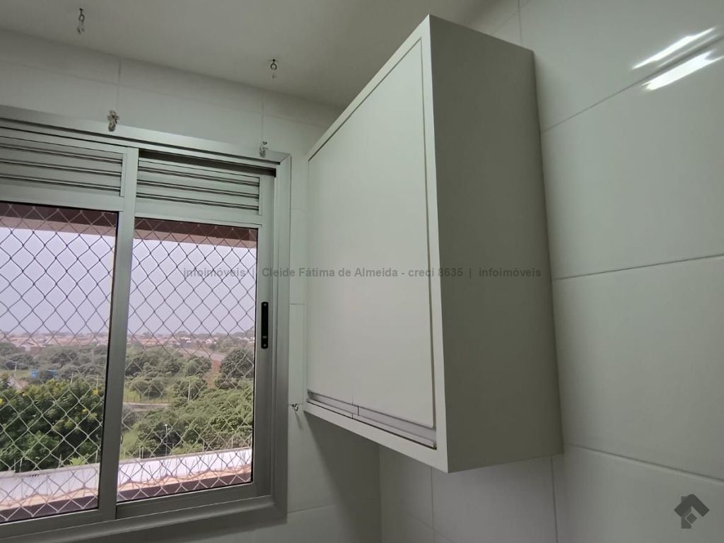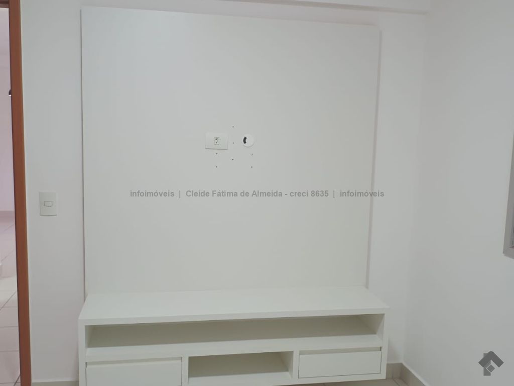 Apartamento com sala com painel de TV, cozinha com armários planejados, área de serviço com armário, 1 suíte com painel de TV, guarda-roupa planejado, banheiro com armário planejado, espelho, chuveiro e box, 1 quarto e banheiro social com armário planejado, espelho, box e chuveiro, sacada com tela de proteção, 1 vaga de garagem.
