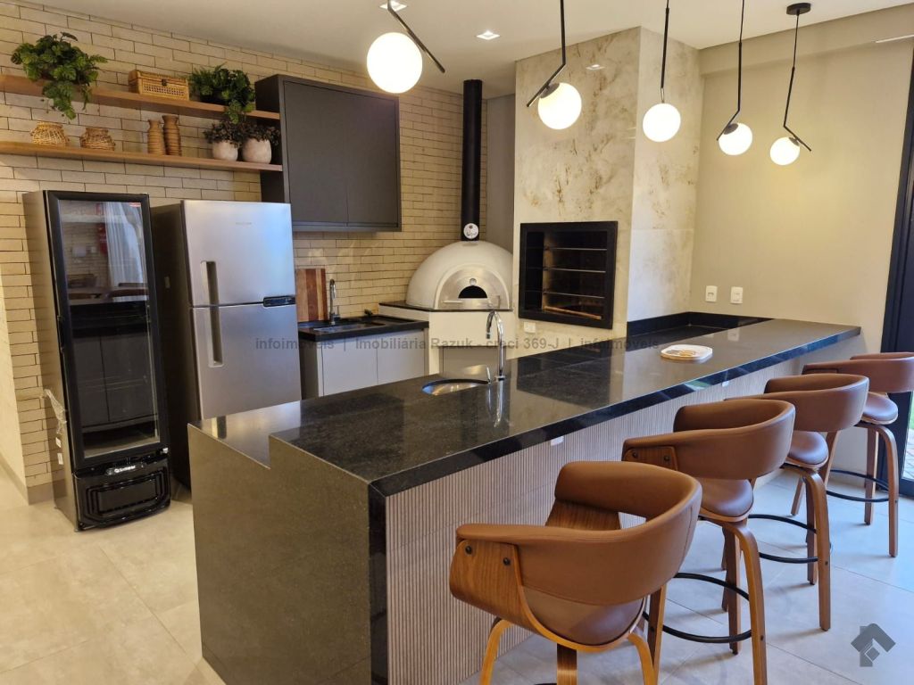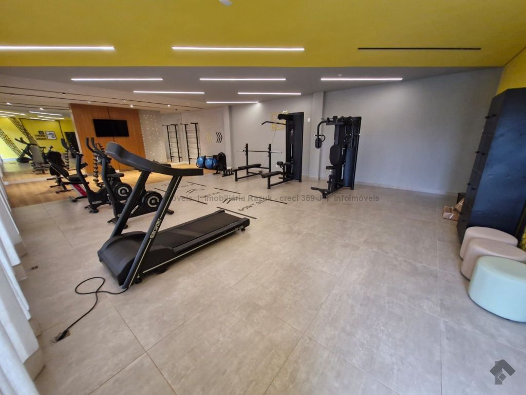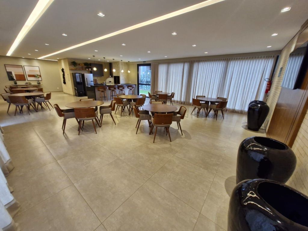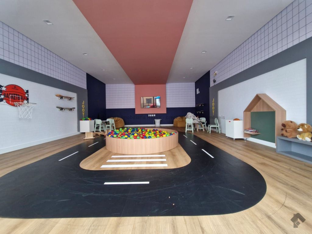 Sala integrada com cozinha e área de serviço, pia com armário e bancada com cooktop. Sacada com churrasqueira e pia. 1 suíte e banheiro com box blindex. 1 quarto. 1 banheiro com box blindex. 1 vaga de garagem. Condomínio com área de lazer, piscina, quiosque com churrasqueira, brinquedoteca, quadra de esportes, salão de festas, academia e área pet.