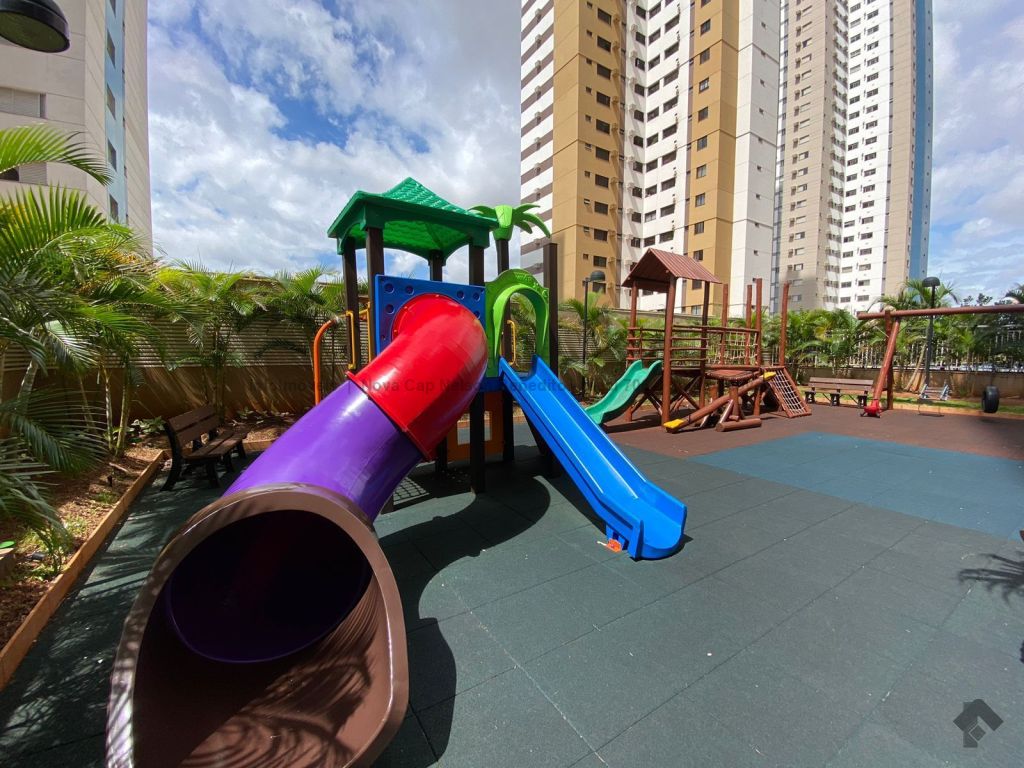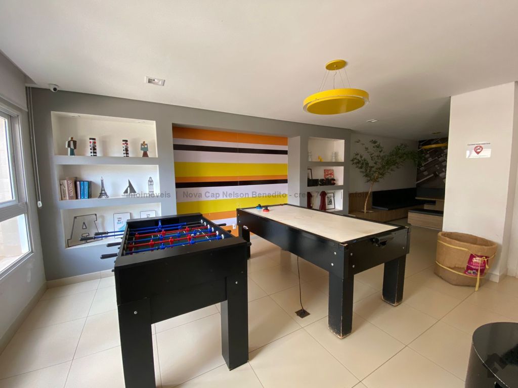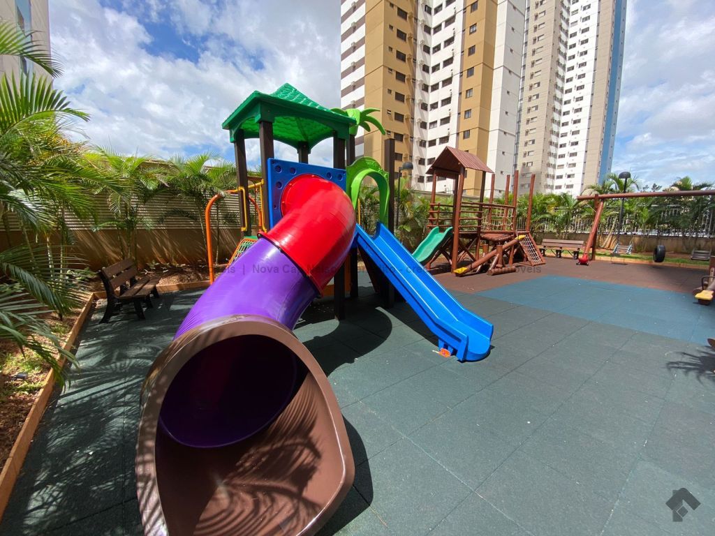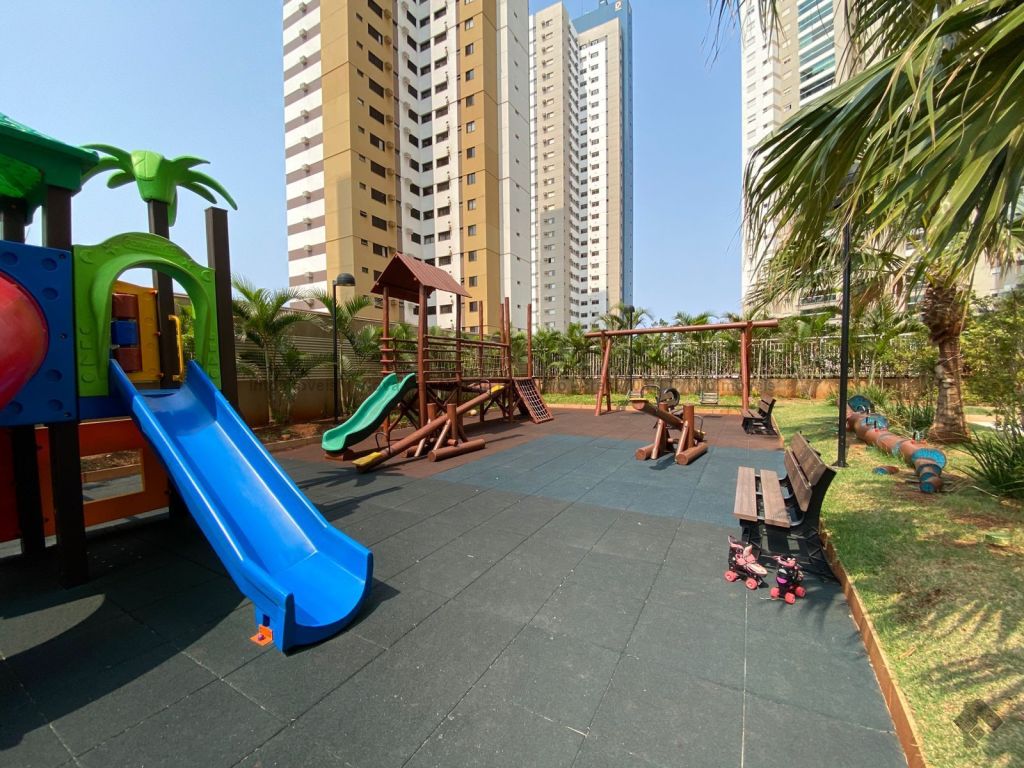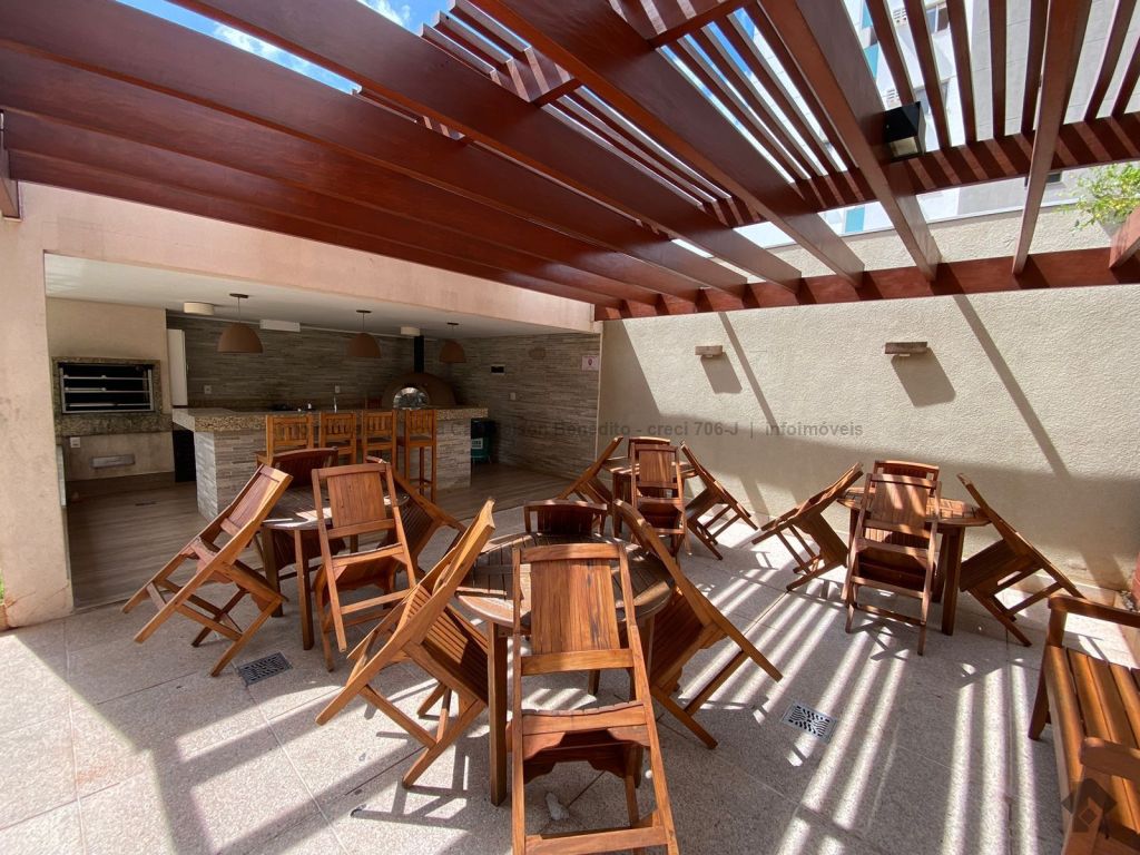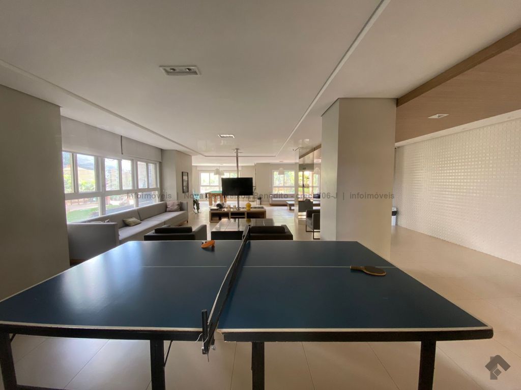 Sala de estar integrada com sala de jantar, lavabo, cozinha, três suítes sendo uma com closet, banheiro social, sacada com churrasqueira, área de serviço, WC de serviço, depósito, duas vagas de garagem.