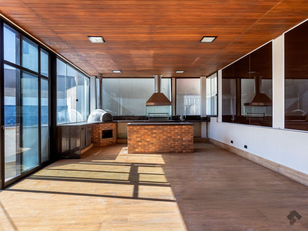 Destaques do imóvel: 4 suítes com armários planejados, 1 apartamento com armário embutido, amplas salas de estar, jantar e TV, sacada com vista panorâmica, cozinha planejada, despensa, escritório privativo, lavabo, WC de serviço, lavanderia independente, quarto para empregado, 4 vagas de garagem, lareira, aquecedor solar, home theater, hidromassagem. Lazer e comodidade: piscina adulto e infantil, sauna, churrasqueira, academia completa, salão de festas, salão de jogos, brinquedoteca, jardim, playground, quiosque, portaria, guarita e câmeras de segurança, estacionamento para visitantes, hall de entrada elegante, terraço.