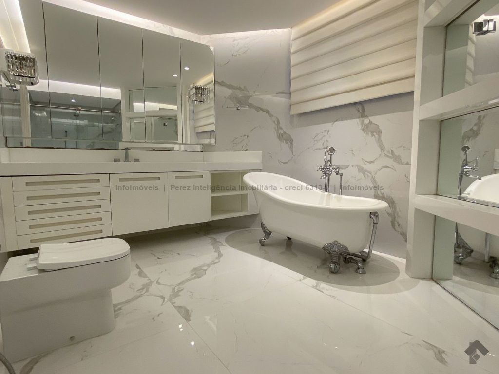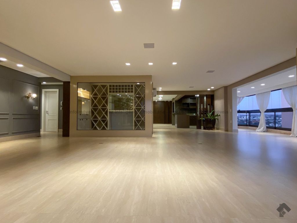 Apartamento duplex de alto padrão com 697,14 m² na cobertura do Edifício State Garden, Jardim dos Estados. Possui 5 salas amplas com ambientes elegantes, incluindo adega, lareira e decoração em madeira, 3 lavabos, cozinha totalmente equipada com armário embutido francês e eletrodomésticos de alta qualidade, 4 suítes sendo 1 suíte master, quartos espaçosos, todos com closets e banheiras, brinquedoteca, área de serviço com armários embutidos, banheiro de serviço, área gourmet completa, piscina privativa, 2 sacadas amplas, estufa para flores e jardim privativo, 4 vagas de garagem.