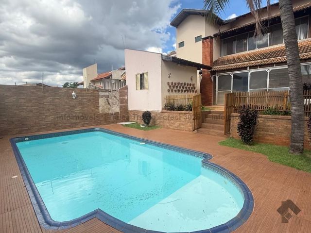 Este imóvel possui um sobrado em um terreno e no outro possui um amplo espaço gourmet e uma área verde. O sobrado possui no pavimento superior uma suíte, dois apartamentos e um quarto, todos com armários. Já no pavimento inferior possui sala para três ambientes, escritório, lavabo, cozinha planejada, área de serviço, um quarto, um banheiro, uma varanda com churrasqueira, depósito e uma piscina. Já no terreno ao lado possui um espaço gourmet, banheiro e uma área verde com árvores frutíferas.