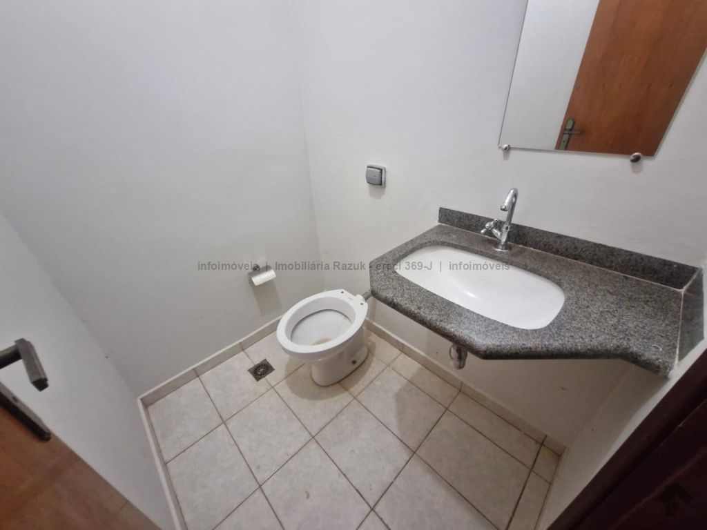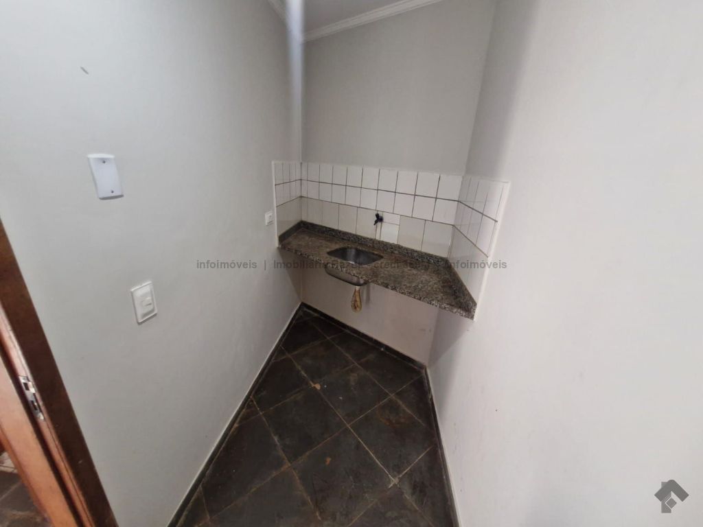 1 recepção, 5 salas sendo uma com pia, 2 WCs, 1 copa, 6 vagas de garagem.