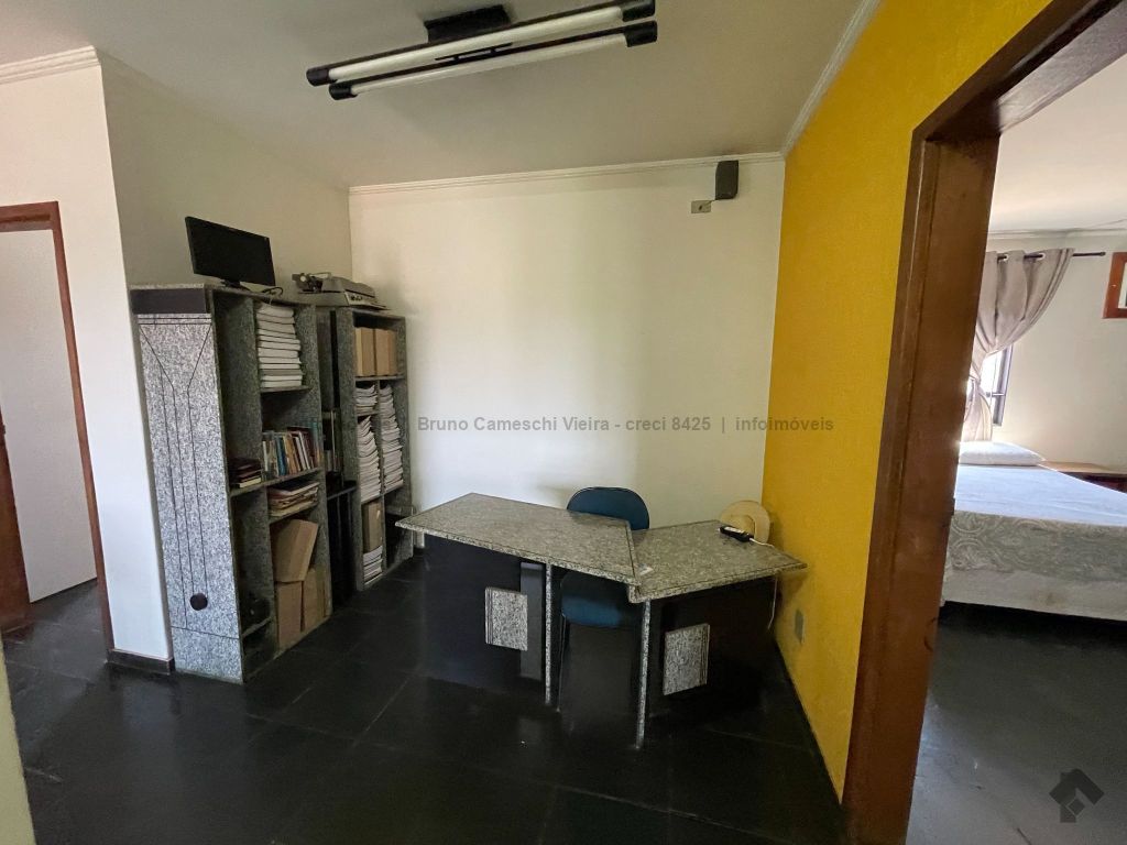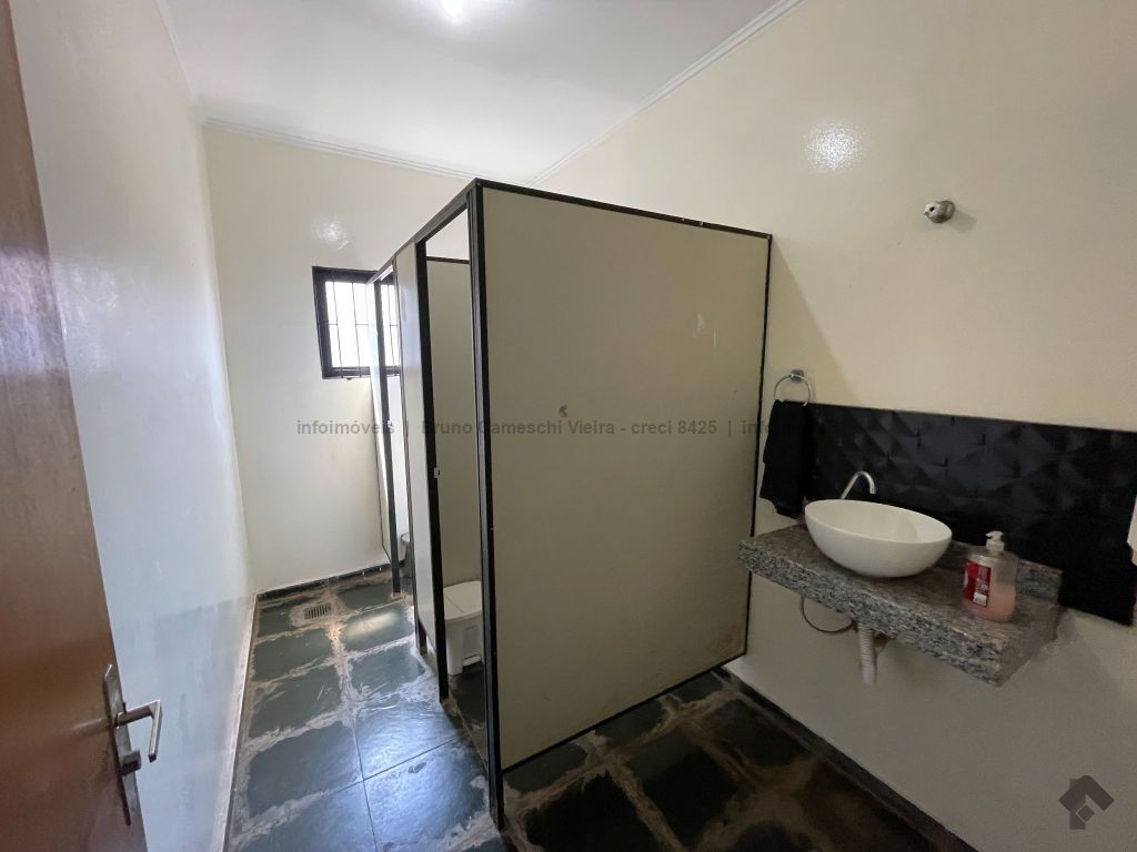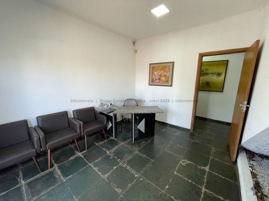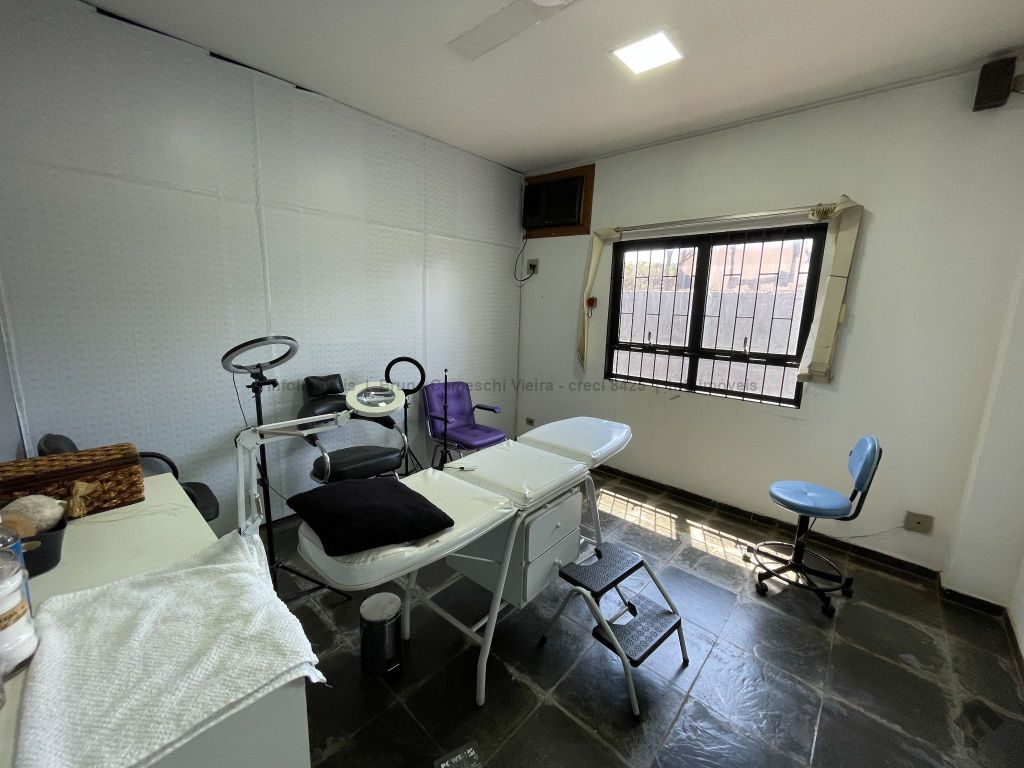 O sobrado possui na parte térrea recepção, 1 copa, 2 banheiros com pia e 2 divisórias, cada uma com 2 vasos, 6 salas, 1 edícula, 1 quarto, 1 banheiro, garagem, 1 guarita, e na parte de cima 3 suítes, 1 recepção, mais 2 salas amplas, 1 cozinha ampla.