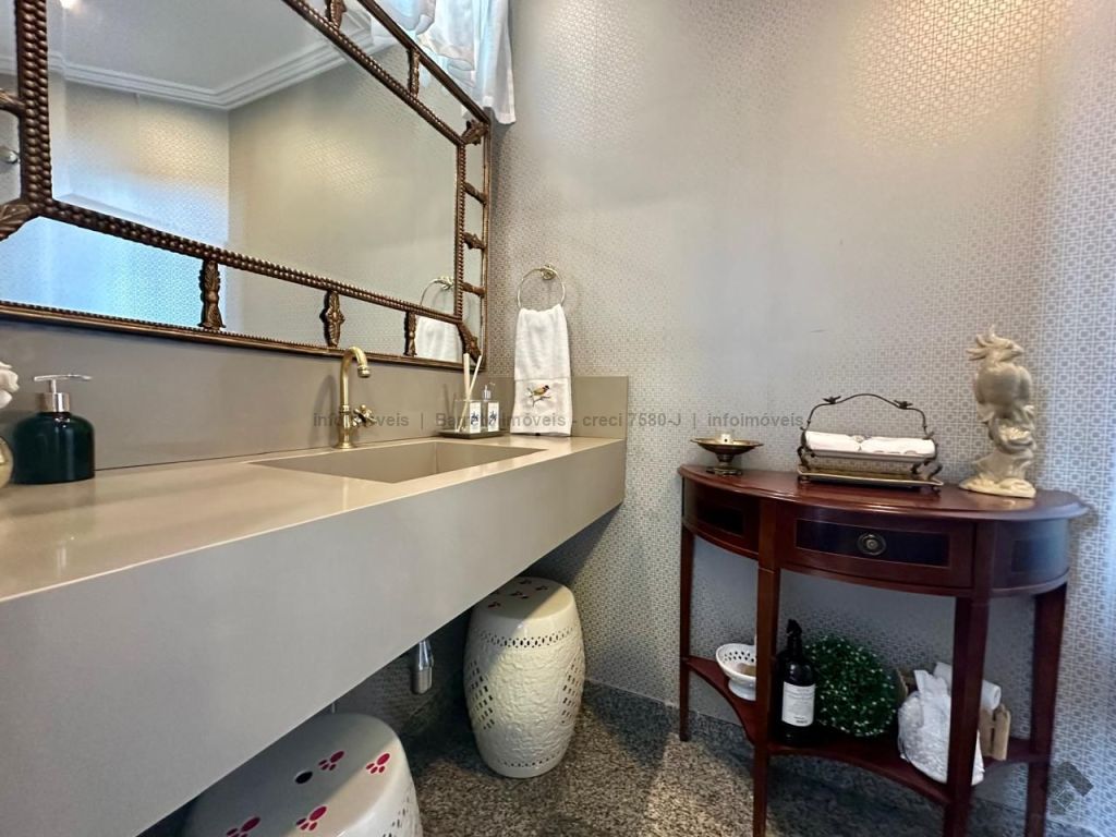 Ampla sala de estar com dois ambientes, perfeita para momentos em família. Sala de jantar com clima de casa de interior e escritório tranquilo com vista para o quintal. Sala de cinema aconchegante para o descanso, cozinha espaçosa em estilo fazenda ideal para grandes refeições e lavanderia arejada e funcional. Conta ainda com academia particular e banheiro social completo, unindo conforto e praticidade em todos os espaços.