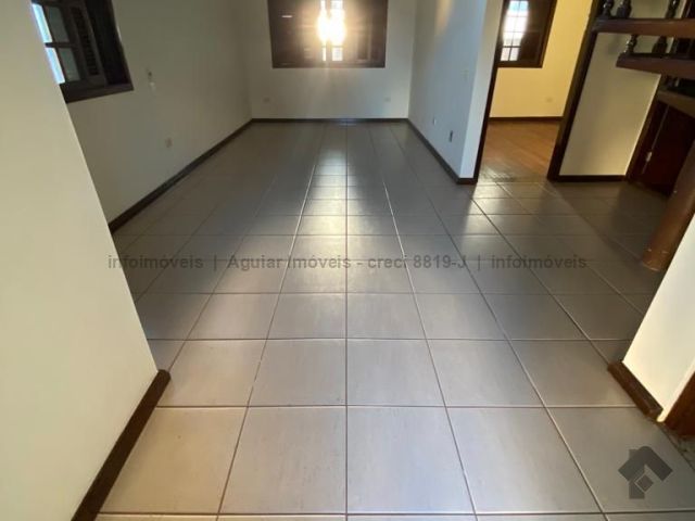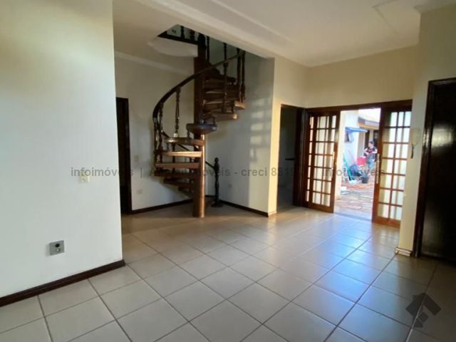 Sala com dois ambientes, lavabo, 2 quartos com demi-suite, 1 quarto, WC social, cozinha com copa, 1 quarto no sótão, área de serviço, garagem com 4 vagas.