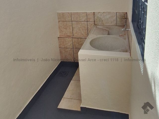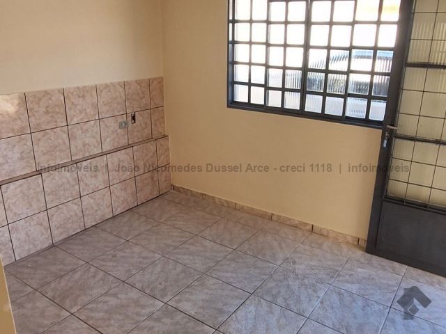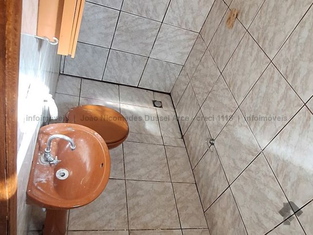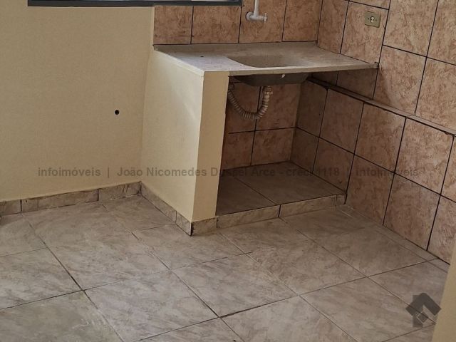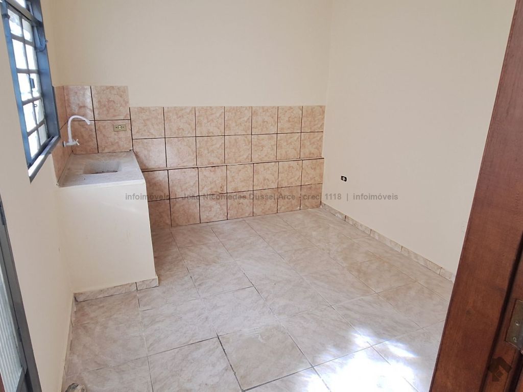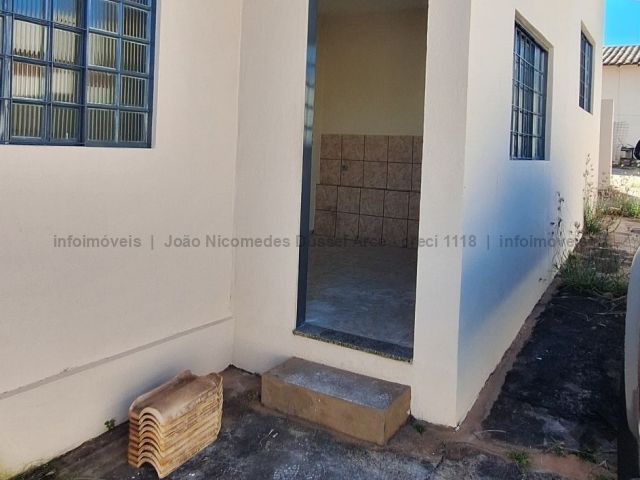 Casa geminada com um dormitório, sala, cozinha, WC e área de serviço.