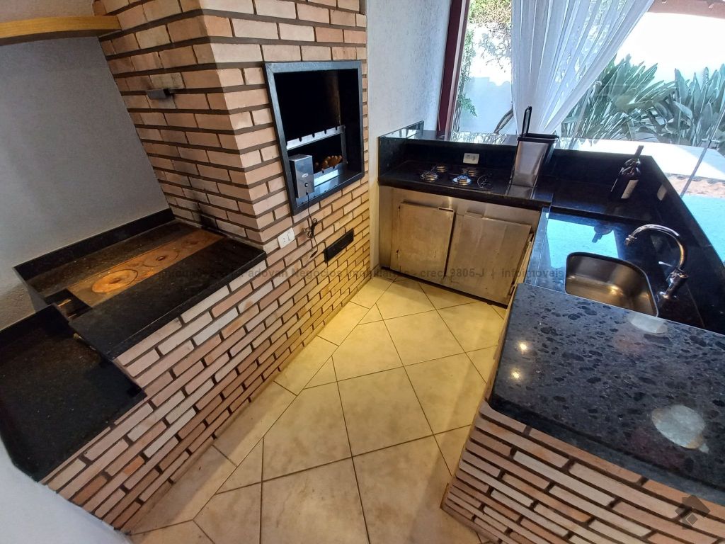 Imóvel com sala brinquedoteca com ar condicionado, sala de TV/jantar ampla com ar condicionado, lavabo, cozinha com armários planejados, fogão e coifa, lavanderia, banheiro de serviço, despensa com armários planejados, área gourmet com armário planejado, ar condicionado, churrasqueira com grill, fogão a lenha, cooktop e câmara fria, piscina aquecida, banheiro, hall dos quartos com roupeiro, 2 suítes com armários planejados e ar condicionado, banheiros com armário e box de vidro temperado, 1 suíte máster com closet, banheiro da suíte máster com banheira de hidromassagem, armário e box de vidro temperado. O condomínio oferece área de lazer completa, academia e salão de festas.