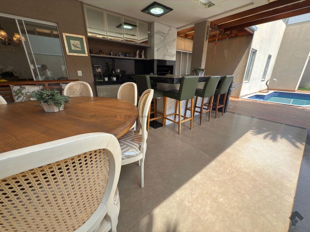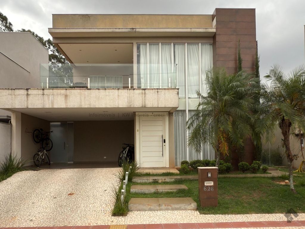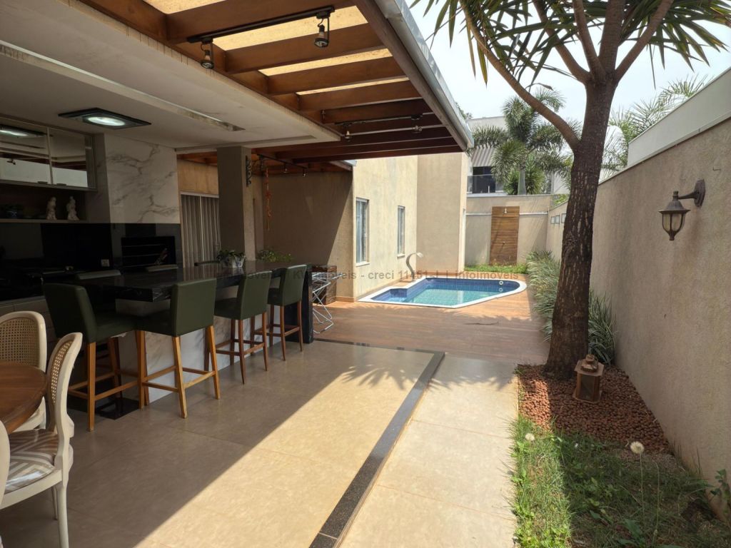 Casa no condomínio Damha III. Detalhes do imóvel: área total de 381 m², área construída de 264 m² mais 11 m² de piscina. Composição: 03 suítes térreas, 01 suíte master no pavimento superior, sala de TV no piso superior, sala de estar e jantar integradas, lavabo, cozinha com área de serviço, área gourmet com churrasqueira, banheiro externo, garagem para 4 carros (2 cobertos).