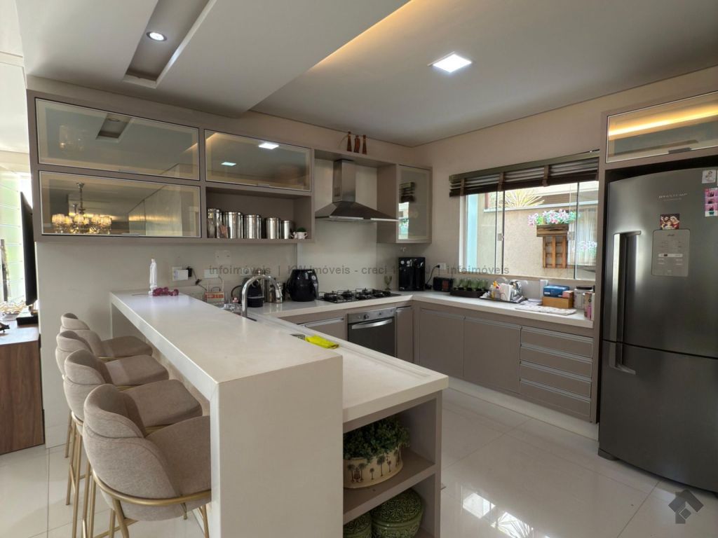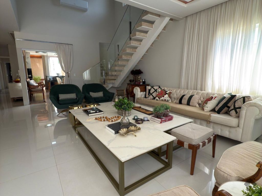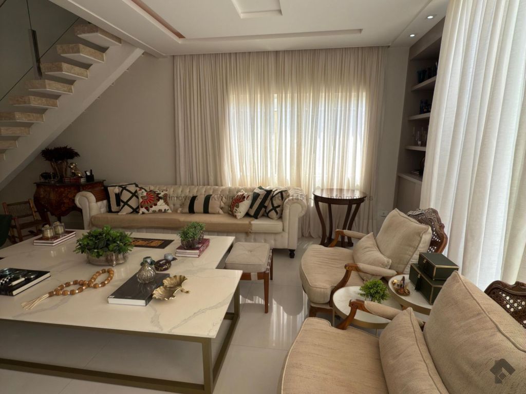 Imóvel mobiliado, mobília inclusa: geladeira, fogão, exaustor, 2 camas, mesa de jantar com 6 cadeiras, balcão Beef, 4 banquetas (cozinha), 6 banquetas (área gourmet externa), 4 aparelhos de ar-condicionado, sofá grande na sala, mesa de centro em mármore branco, sofá da sala de TV (piso superior). IPTU anual R$ 6.782,00 (aproximadamente).