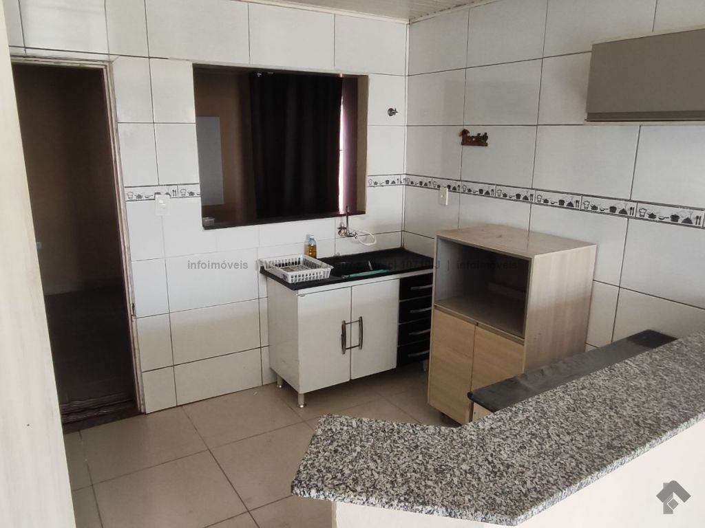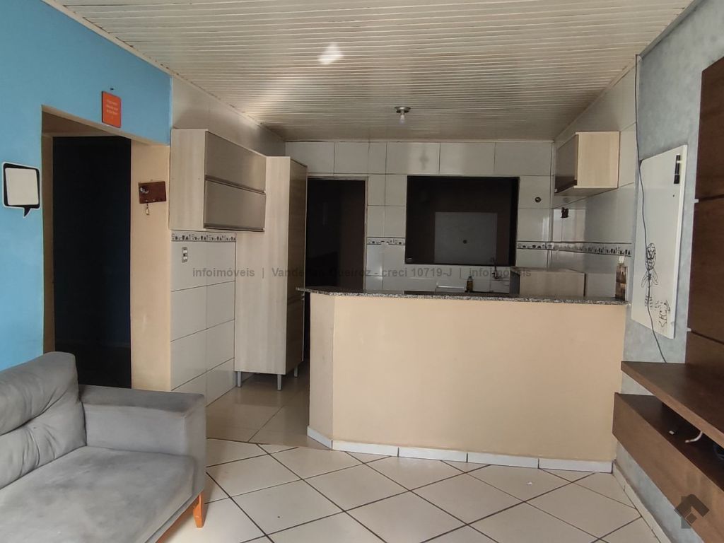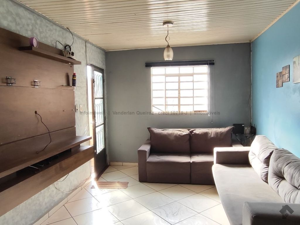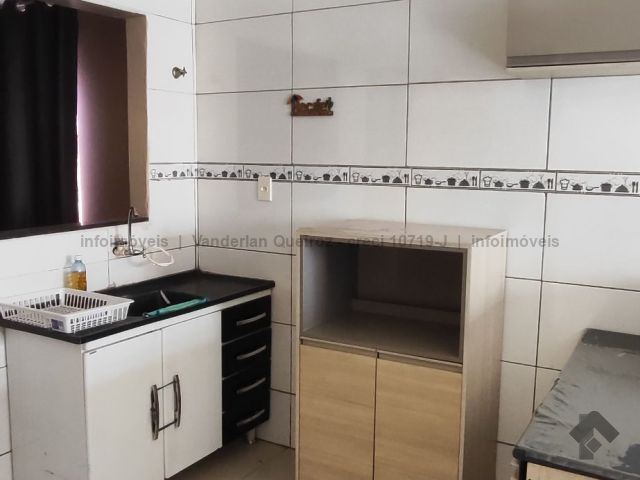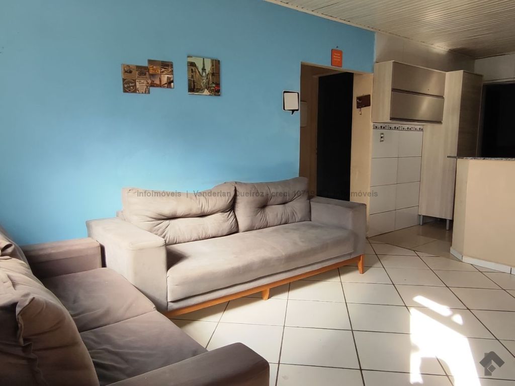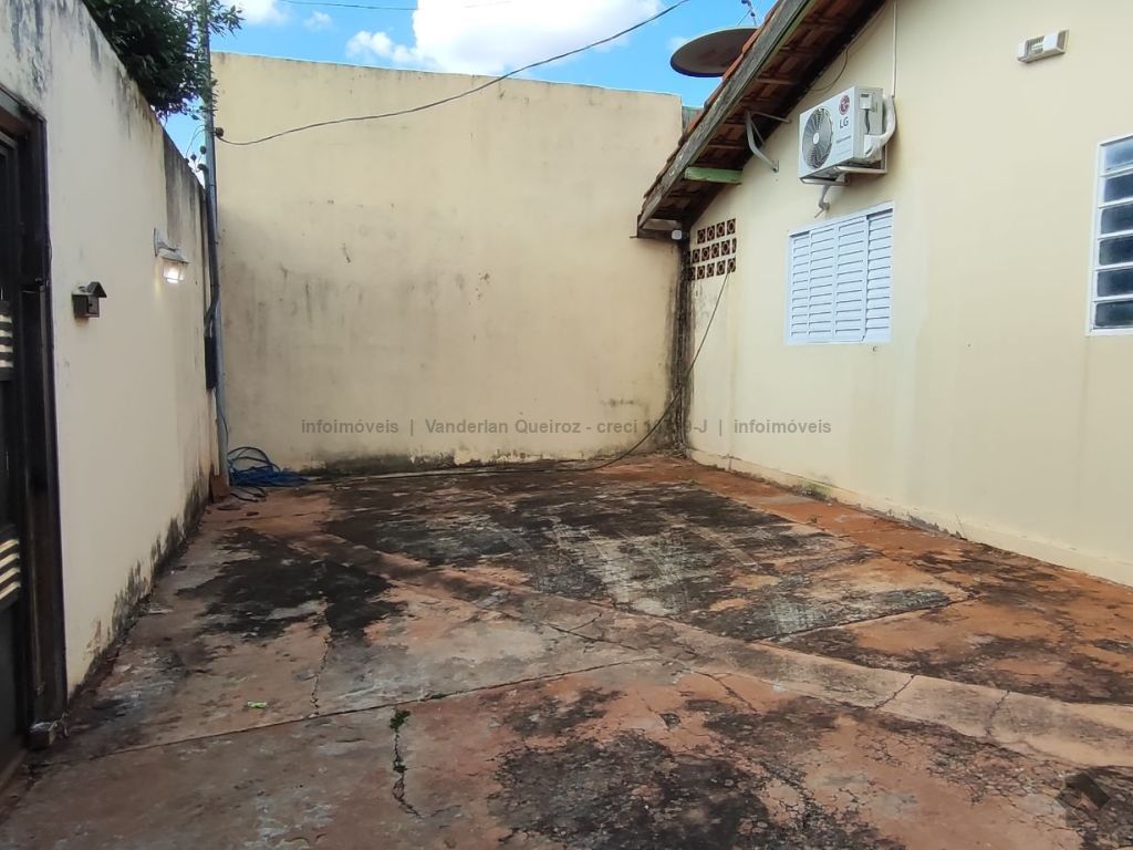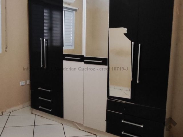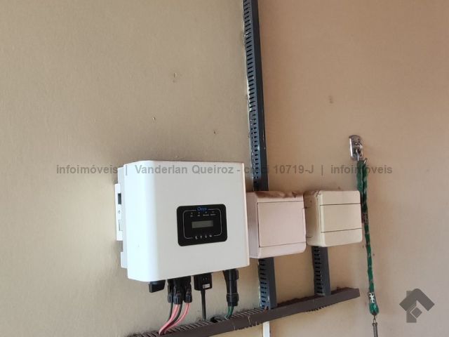 Casa contendo 3 quartos (1 com armário embutido), 2 salas, cozinha com armários, banheiro, área de serviço, varanda e garagem descoberta. A casa possui 1 guarda-roupas, sofá, painel para TV, máquina de lavar roupas e 1 ar condicionado split. Possui placas solares.