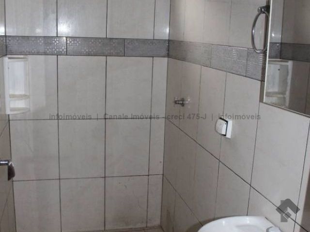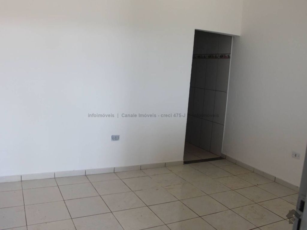 Casa com sala de estar, cozinha, 2 quartos, banheiro social, área de serviço e vaga de garagem.