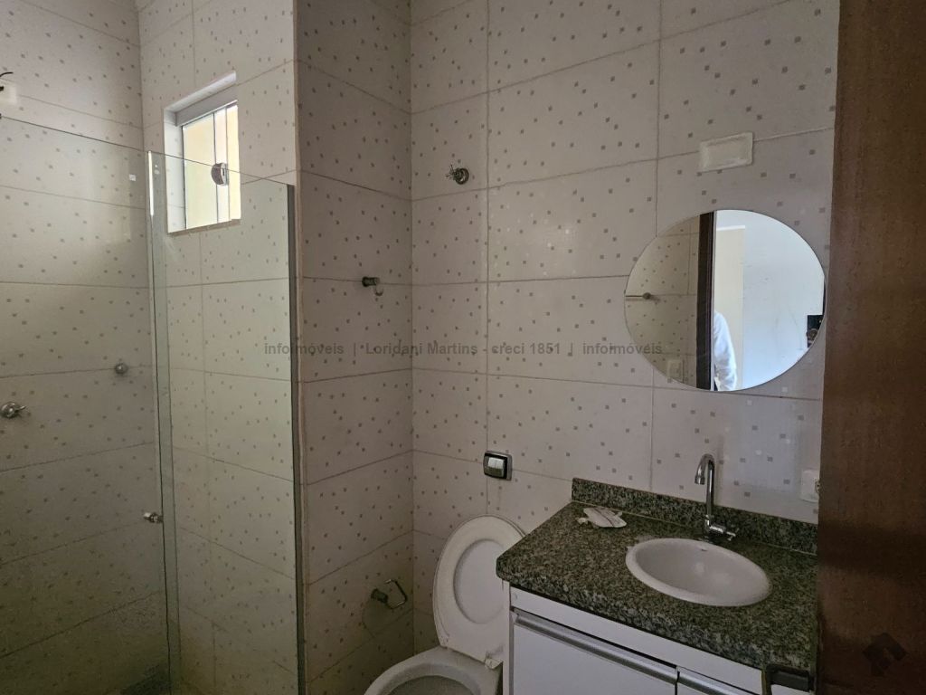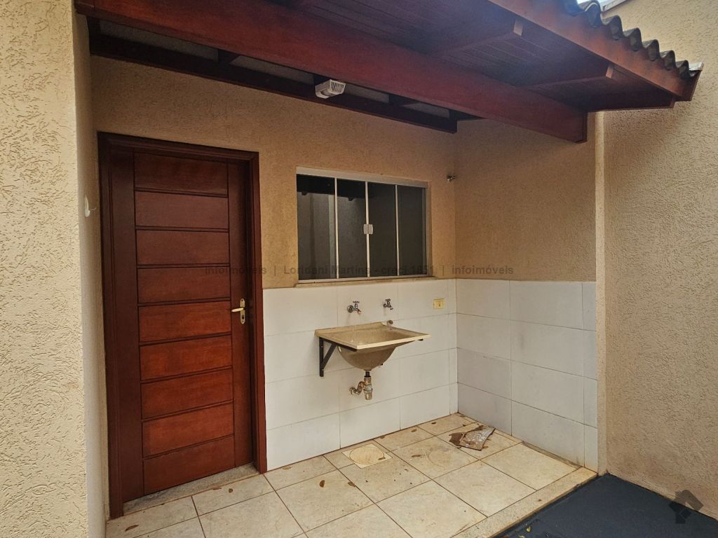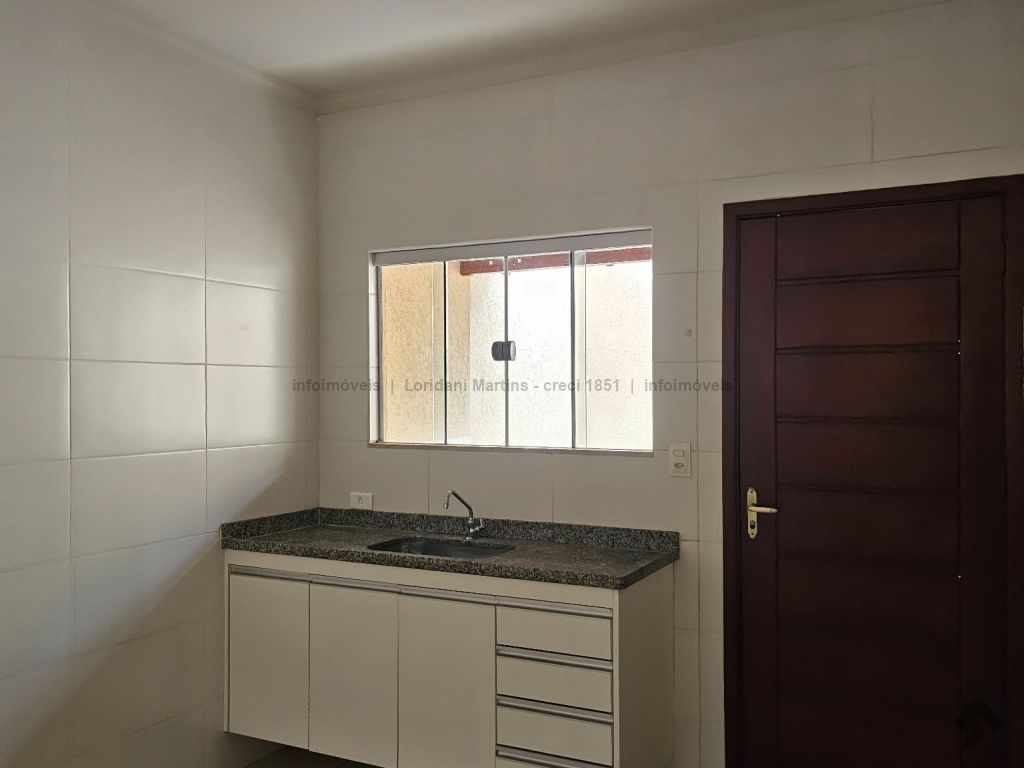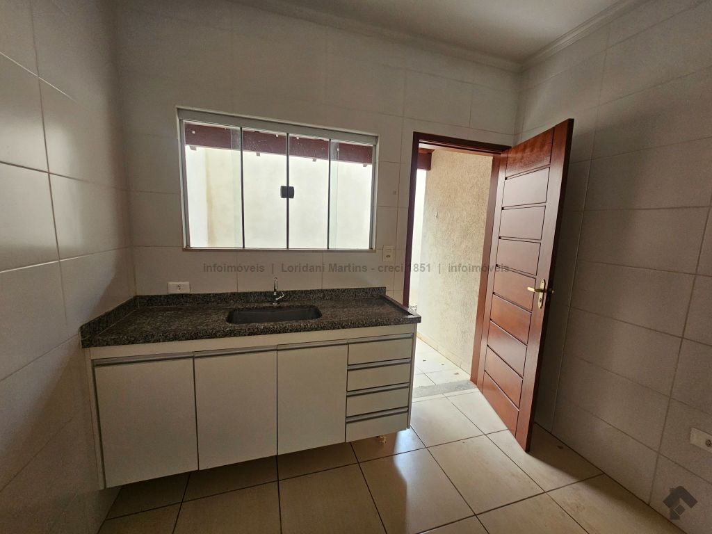 Excelente casa com sala de estar, dois quartos, banheiro social com armário sob a pia, cozinha com armário sob a pia e bancada em granito, área de serviço coberta, quintal e varanda com garagem.