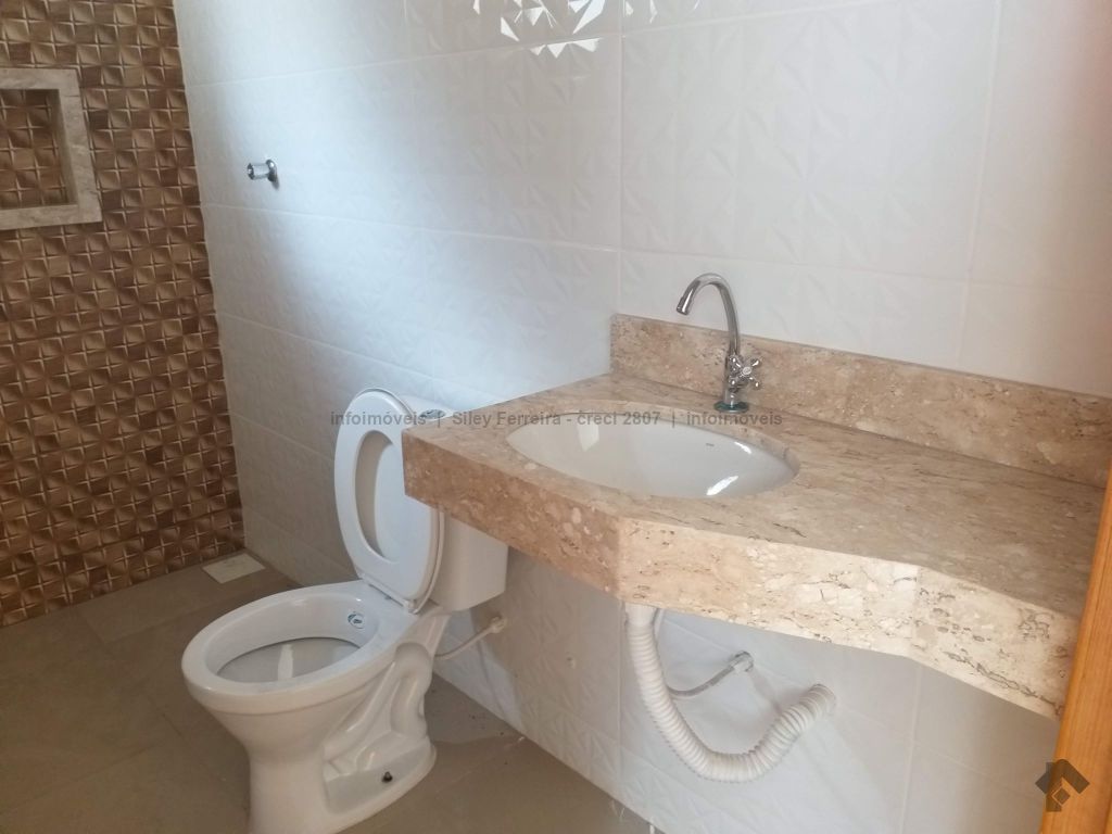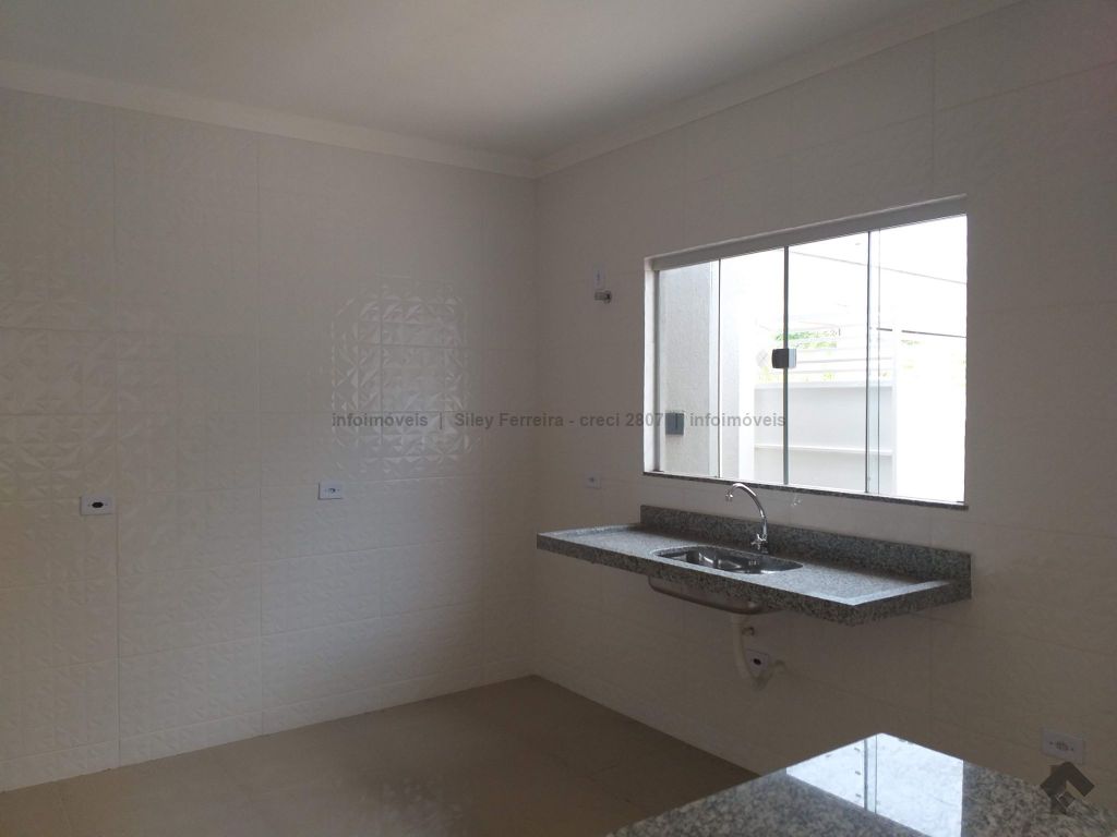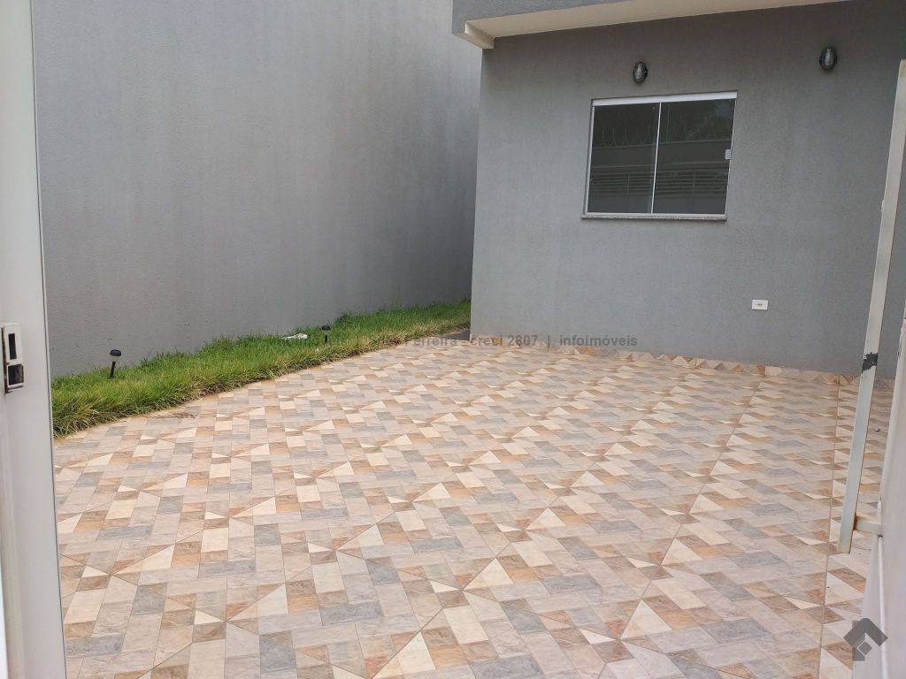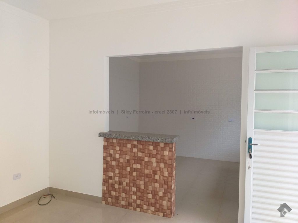 Casa com 2 quartos, sendo 1 suíte. Banheiro da suíte com box, banheiro social também com box. Sala integrada à cozinha americana, área de serviço nos fundos com churrasqueira. Garagem descoberta para 2 carros.