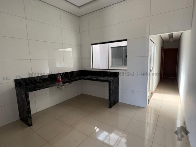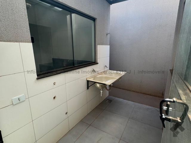 Imóvel contém uma suíte, um quarto, sala de estar com pé direito duplo, cozinha ampla com pia em granito, banheiro social e suíte com nicho e pia em granito, área de serviço coberta com tanque duplo, garagem e quintal nos fundos.