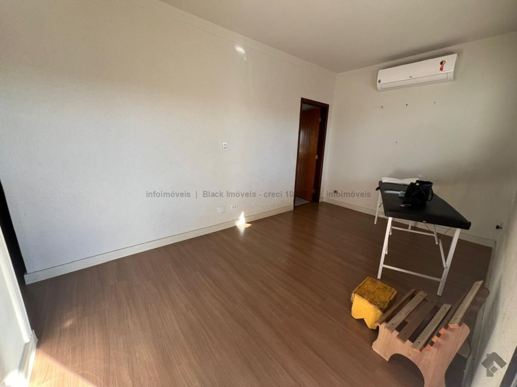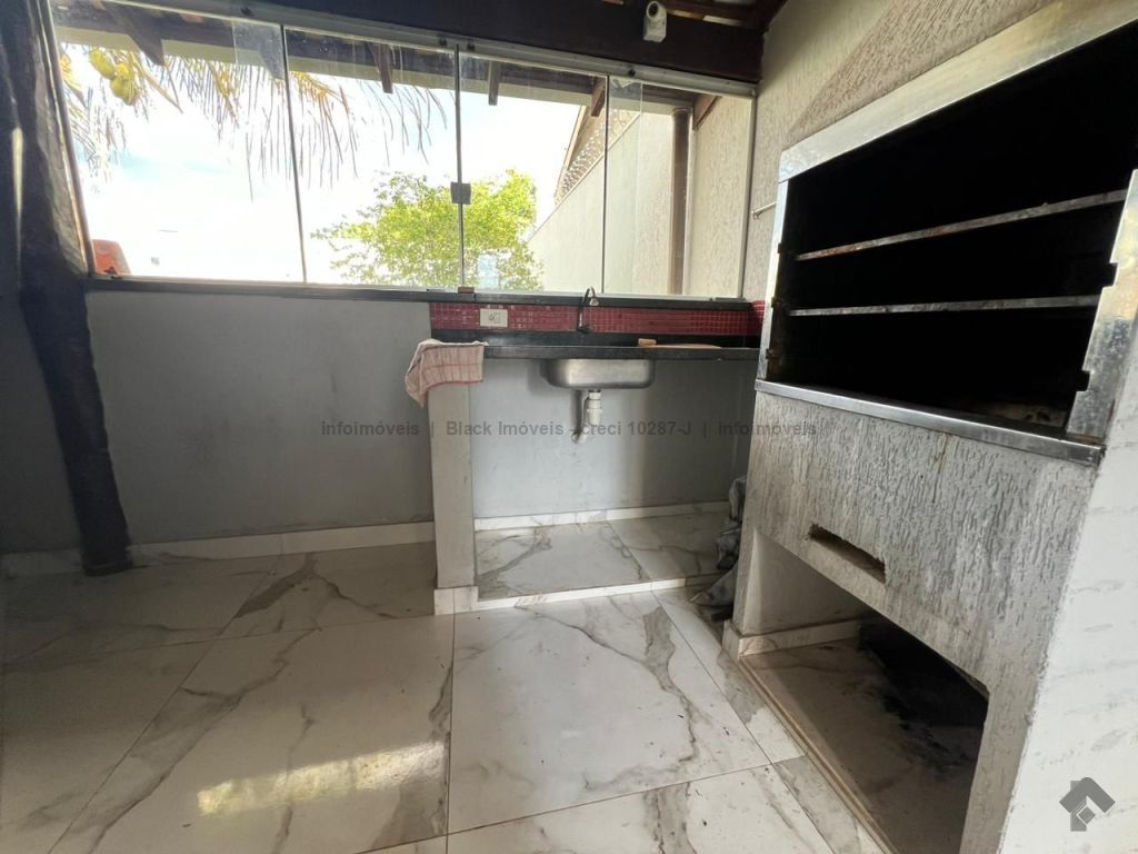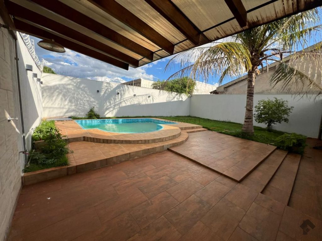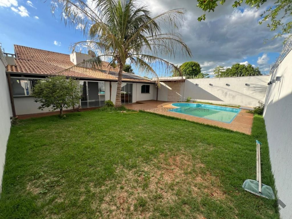 Casa térrea com suíte com armário e 2 quartos com armário, banheiro social, sala com split, cozinha ampla, varanda gourmet com churrasqueira, banheiro do gourmet, área do fundo gramada com piscina aquecida, com aquecimento solar e chuveirão. Garagem para 4 carros.