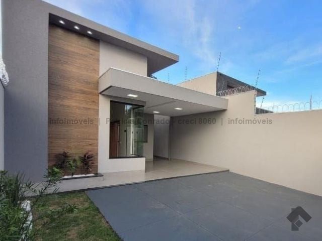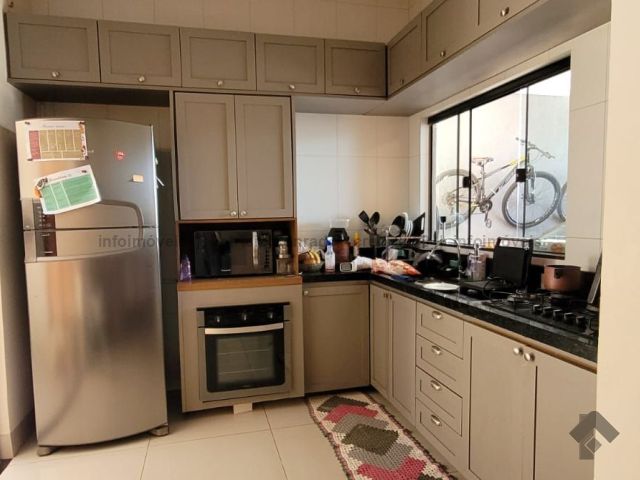 Sala integrada com a cozinha gourmet com móveis planejados, três quartos, sendo uma suíte, um lavabo, suíte com ar condicionado, churrasqueira, portão de elevação, cerca elétrica e concertina, garagem para três carros, pé direito alto.