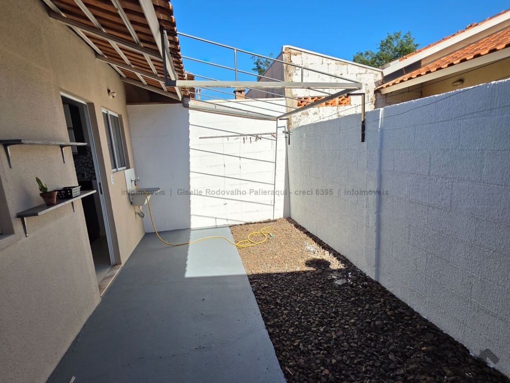 Casa com garagem coberta para 1 carro, 2 quartos sem armários, sala com papel de parede decorativo, cozinha planejada novinha e banheiro com box de vidro, armários planejados e espelho. Área de serviço com estrutura para colocar toldo disponível. Condomínio estritamente familiar, possui uma excelente área verde, avenidas amplas e ótima administração. Local apropriado para descarte de resíduos, portaria 24 horas com excelente staff. Excelente vizinhança.
