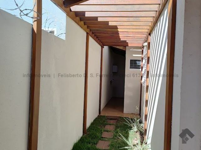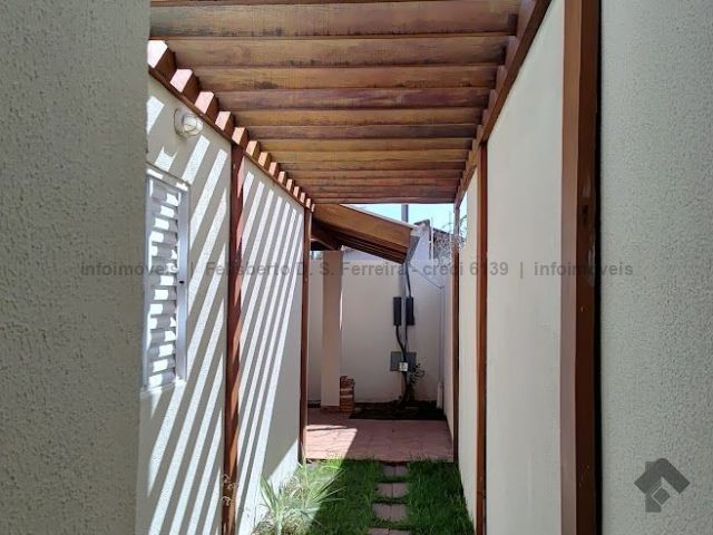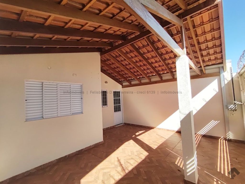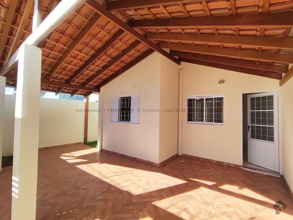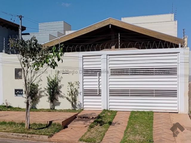 Linda casa com três quartos, sendo um apartamento, cozinha, sala, banheiro social, garagem coberta, área de serviço coberta e quintal.