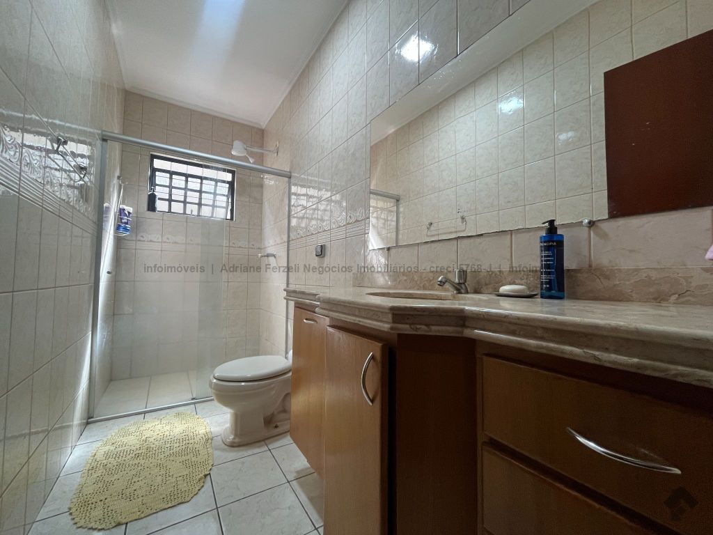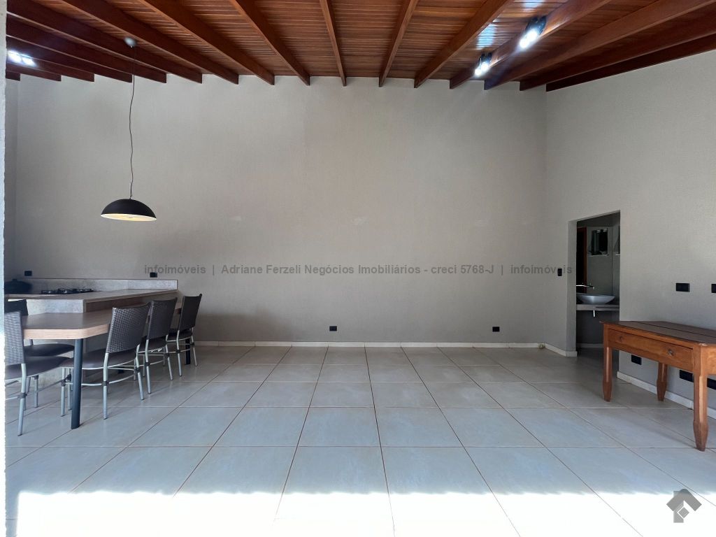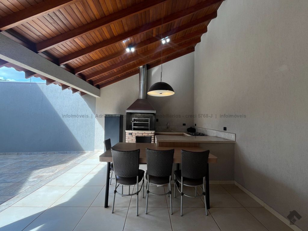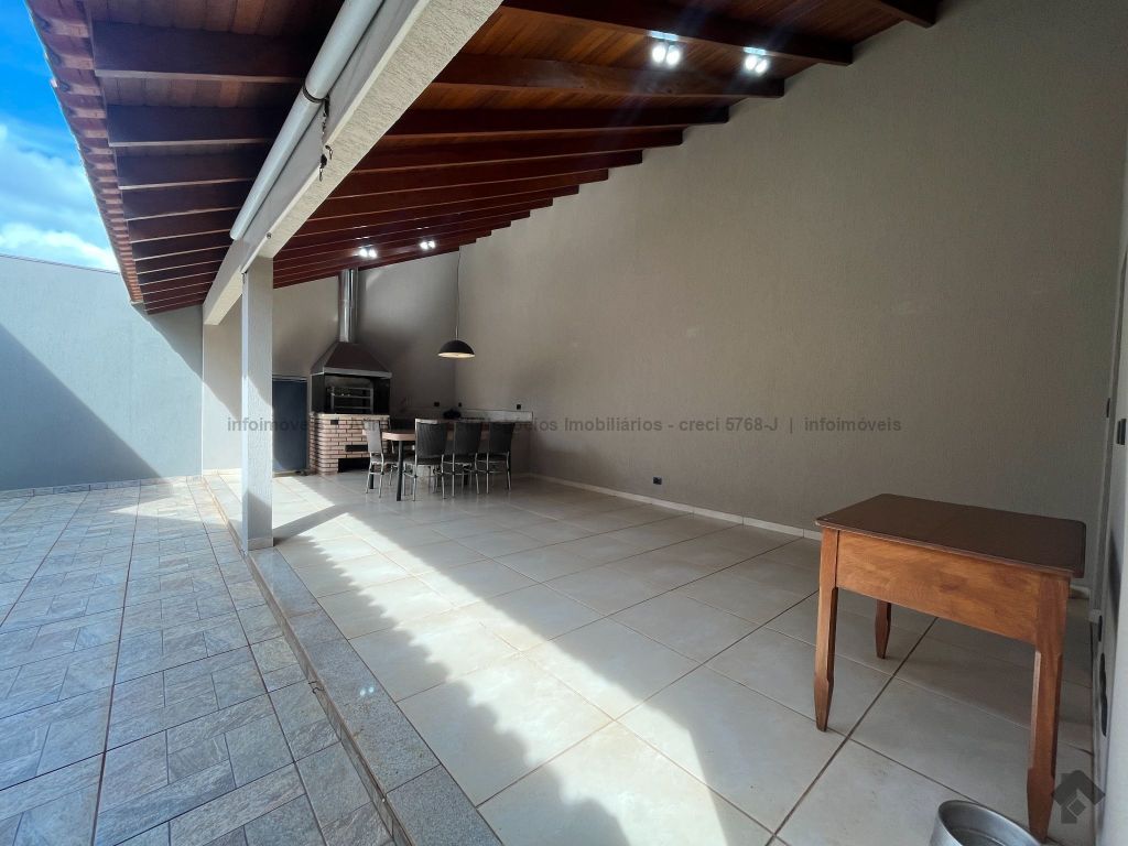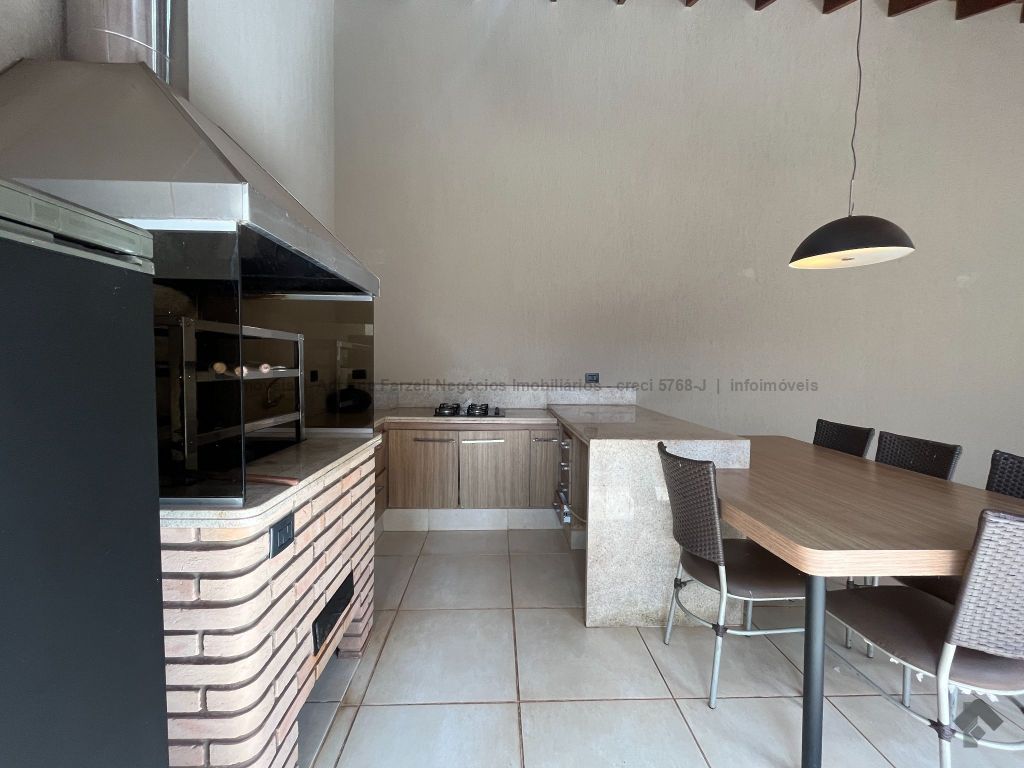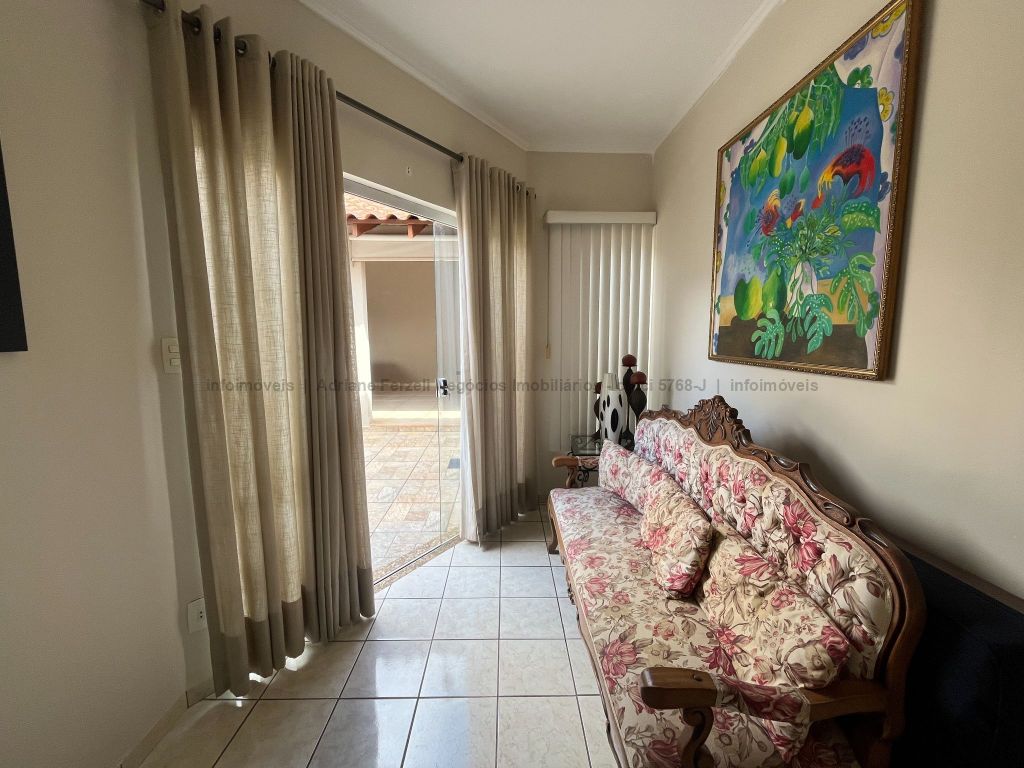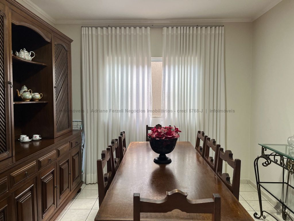 Casa térrea ampla com garagem coberta para dois veículos, sala de jantar, sala de estar, cozinha com armários, lavanderia, espaço para canil, jardim para pequenos cultivos, uma suíte com armários, três quartos com armários, banheiro social, varanda aos fundos ampla, área gourmet reformada com um quarto e um banheiro.