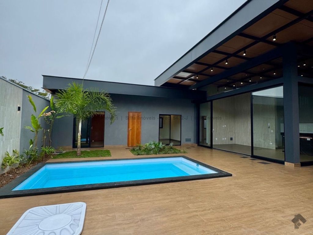 Possui 3 suítes amplas, lavabo, sala de estar, cozinha gourmet integrada com a área de lazer, paisagismo completo, piscina aquecida.