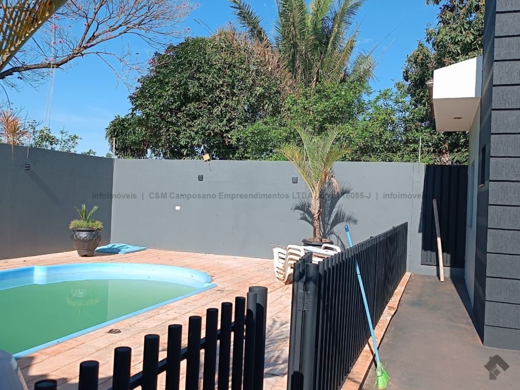 Residência ideal para famílias que apreciam receber visitas, com ampla área de lazer, piscina com proteção e edícula com churrasqueira.