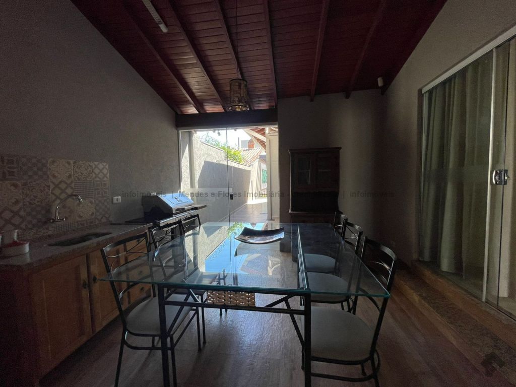 O imóvel dispõe de ampla sala de estar, sala de TV, sala de jantar, lavabo, cozinha repleta de armários e três dormitórios com armários, sendo um deles suíte com closet. A casa ainda conta com canil, garagem para até quatro carros e muito espaço para lazer.