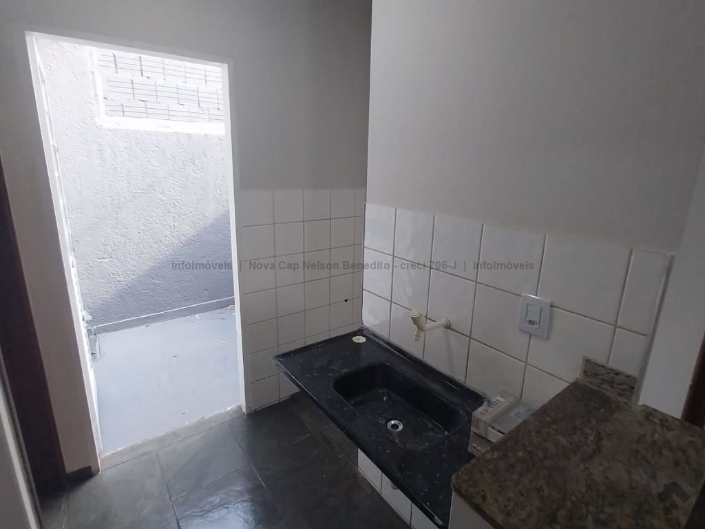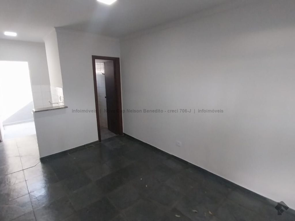 Sala, cozinha, dois quartos, banheiro social, área de serviço, uma vaga de garagem.