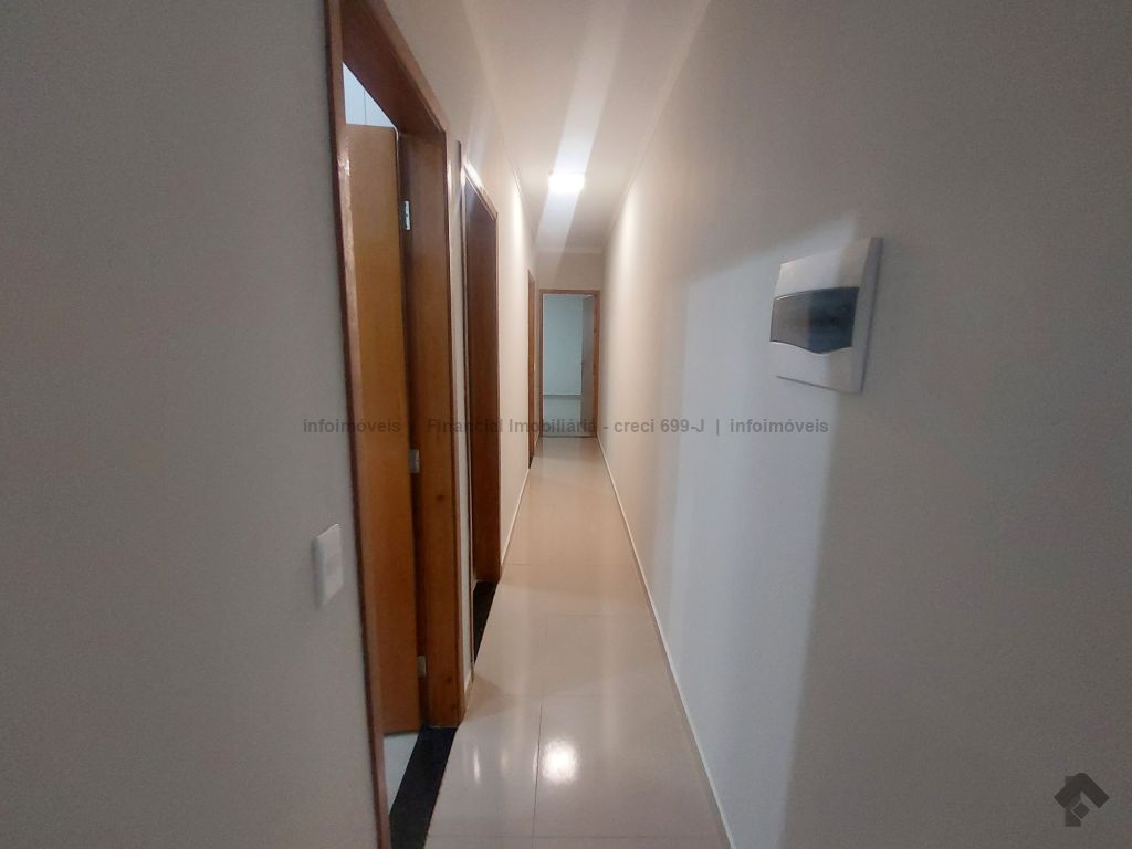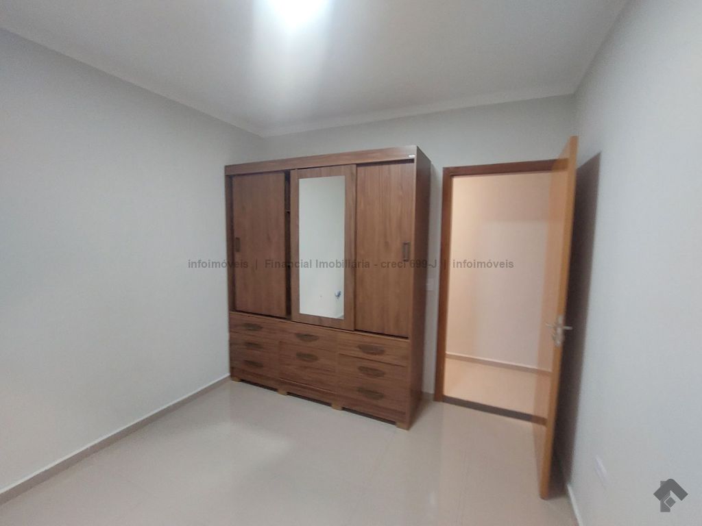 1 sala de estar, 1 quarto, 1 quarto com guarda-roupa, 1 wc social com armário embutido e box, 1 suíte, 1 cozinha com armário embutido, 1 área de serviço coberta, 2 vagas de garagem.