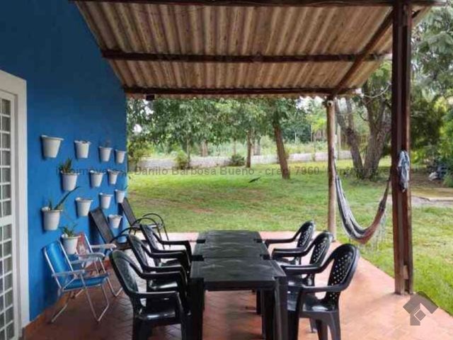 Rancho contendo 1 suíte, 3 quartos, 1 banheiro, 1 sala de TV, 1 cozinha, 1 área gourmet e varanda (fogão a lenha com forno e churrasqueira, bancada em granito), 1 churrasqueira de fogo de chão com bancos em concreto e mesa em concreto, 1 despensa externa, 1 açude para peixes (aerador, bomba d'água, 550 peixes diversos com 9 meses, tambacu, cachara, cachapinta, pintado, piauçu), 1 sistema de monitoramento, DVR, 4 câmeras HD externas, 1 internet fibra.
