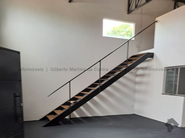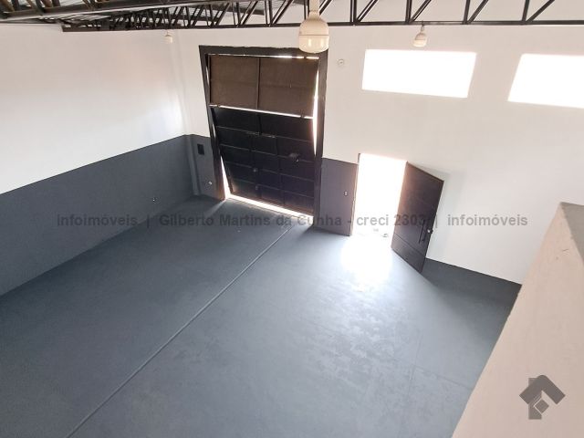 Salão com mezanino, portão articulado para caminhão, ótima logística. Imóvel em alvenaria e cobertura de estrutura metálica.
