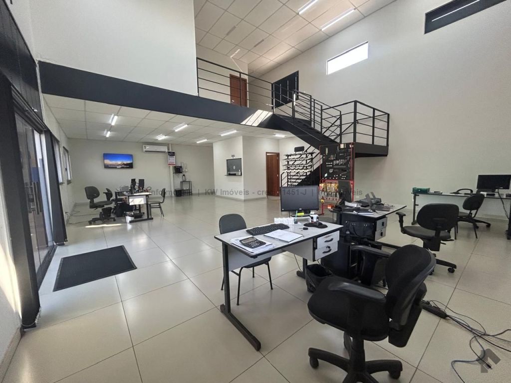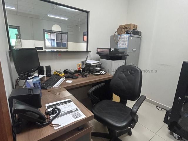 Água, asfalto, calçada, esgoto, muro, piso tátil, rampa de acessibilidade, rede elétrica, área de serviço, copa, cozinha, escritório, estacionamento, recepção, refeitório. Um salão comercial amplo, contendo um escritório amplo, cozinha, refeitório, banheiros, área de serviço e estacionamento.