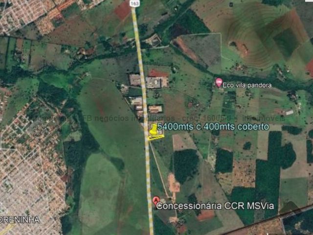 Área às margens da BR-163 no rodoanel de Campo Grande com barracão de 400 m². A área já possui recuo na frente da BR, possibilitando manobra e paragem de veículos em frente à área. Posicionada entre a saída de São Paulo e a saída de Três Lagoas, é uma área perfeita para instalação da sua empresa. Recepção, 02 banheiros, 03 salas e mezanino.