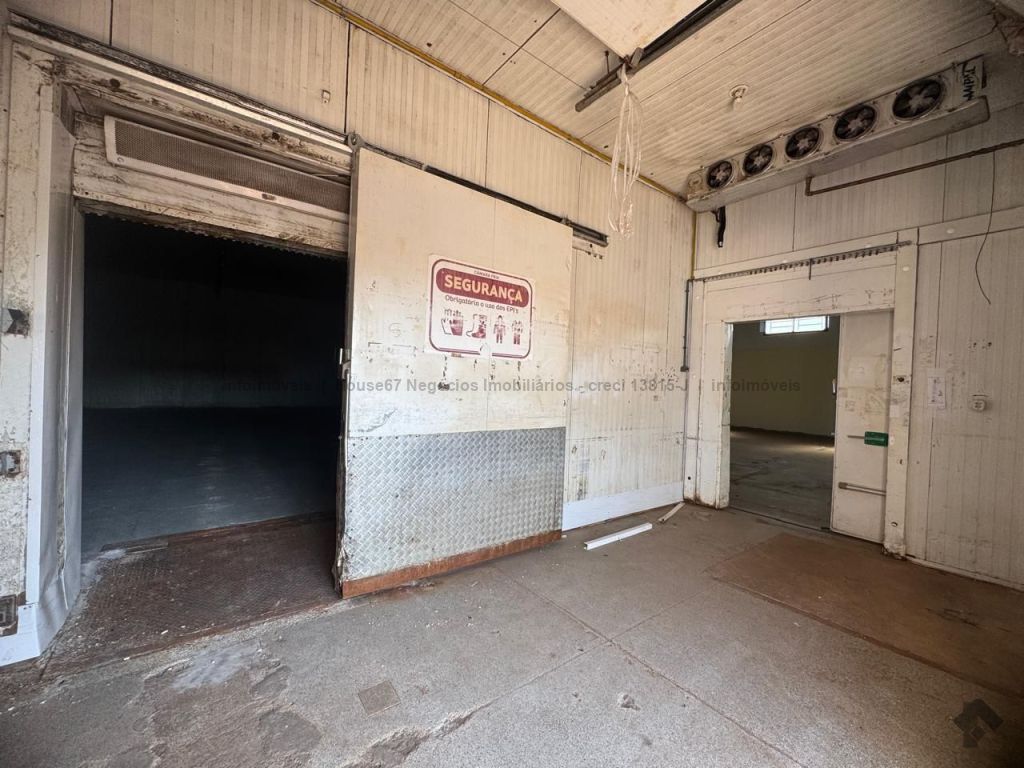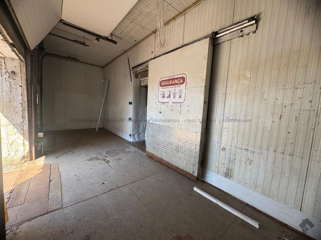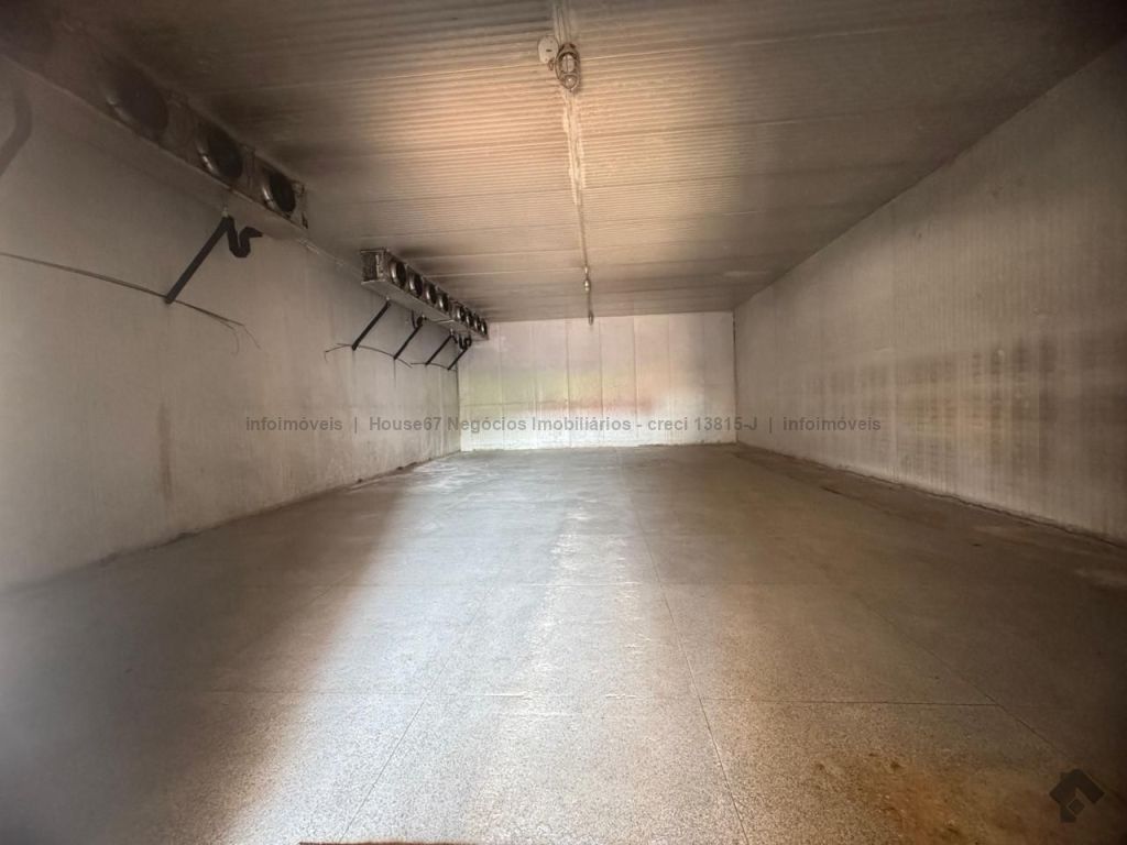 Excelente galpão com amplo espaço e cãmara fria. Esquerda: terreno com construção de uma edícula com 3 cômodos. Meio: galpão com câmara fria. Direita: galpão. Área construída de 662 m² e área total de 990 m². Vaga de garagem para até 4 caminhões.