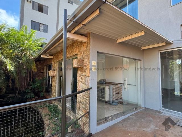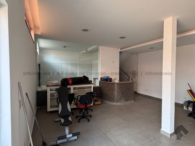 Imóvel comercial com salas individuais e salão com mezanino aos fundos.