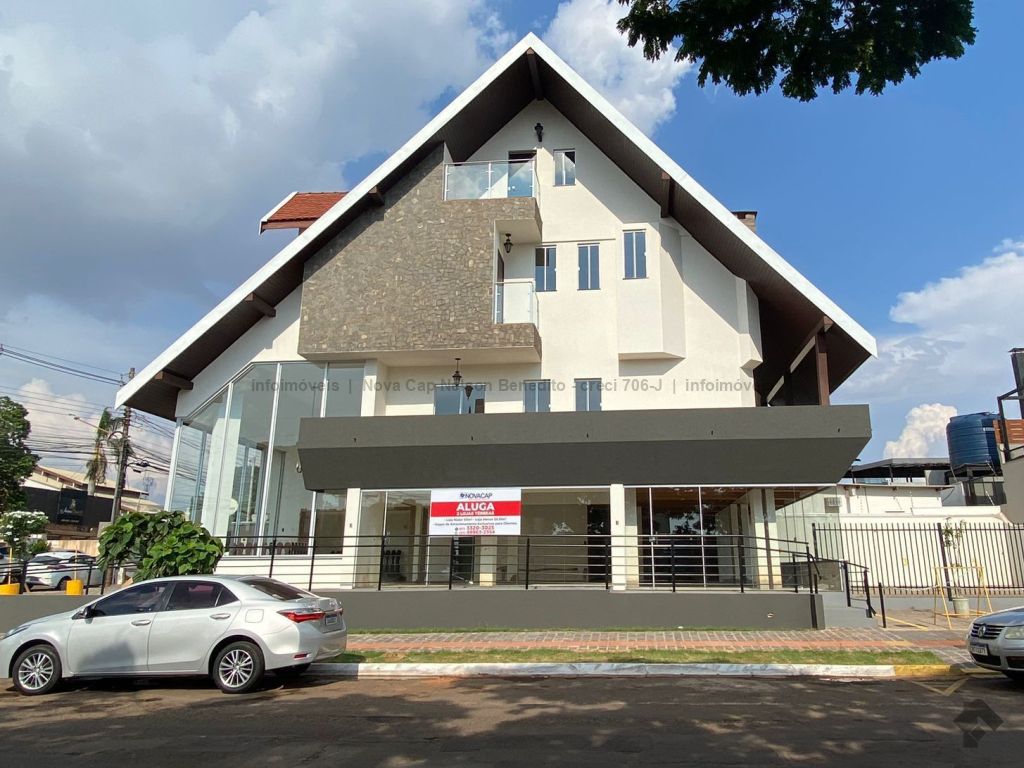 Térreo, salão, copa, banheiro. Pisos superiores. 1º andar: cozinha com armários, três salas, lavabo, área de serviço e sacada. 2º andar: uma sala com armários, duas salas com banheiro e armários, um banheiro social e sacada. 3º andar: sala, depósito e sacada. Vagas de garagem rotativas.