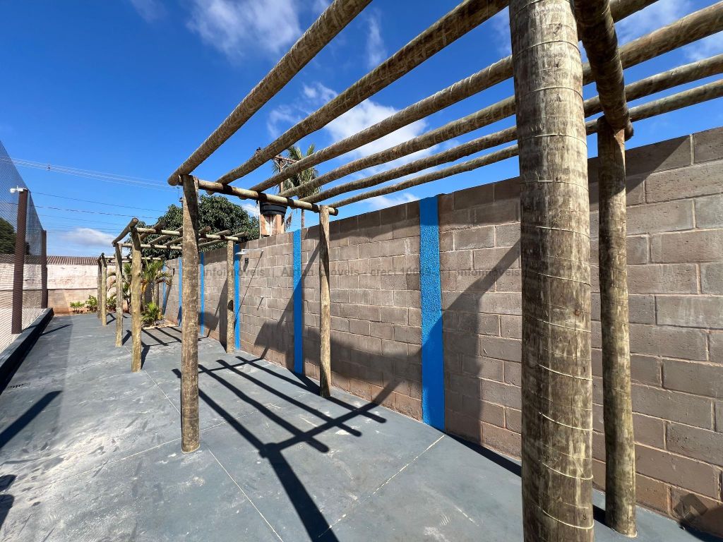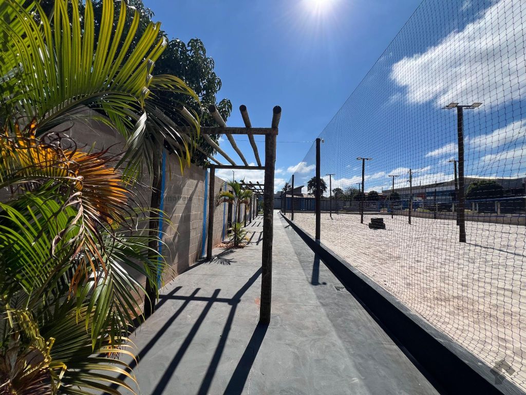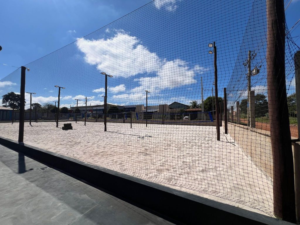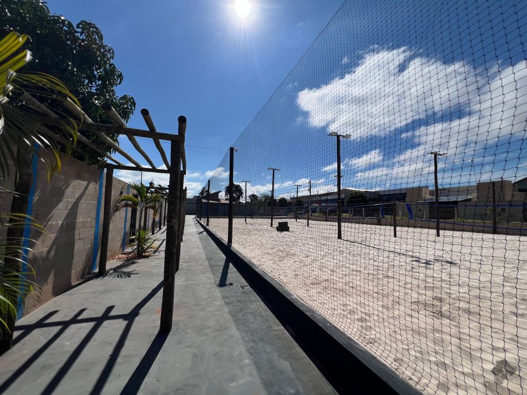 Complexo de quadras esportivas. Possui 4 quadras, cada uma com dimensões de 20 x 10 m, proteção perimetral com redes de 4 metros de altura com malha 5x5 nos cantos, espaço com possibilidade de ampliação para mais 2 campos, 2 WC sociais, varanda em L com bar e despensa.