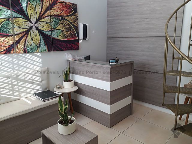 Excelente edifício comercial com dois pavimentos, estacionamento, totem, recepção, oito salas de atendimento e um auditório, banheiros privativos, banheiro adaptado para PCD, espaço kids, copa e cozinha. Estrutura interna em metal com paredes de drywall. Acabamento em gesso e revestimentos variados, com iluminação em LED.