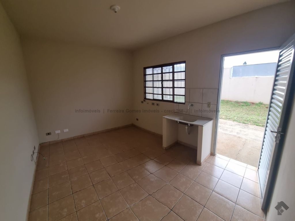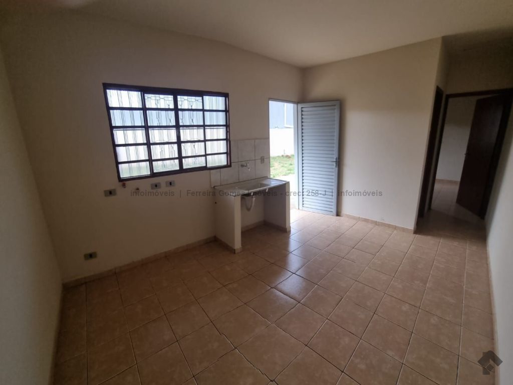 Kitnet contendo 01 sala com cozinha integrada, WC social e 01 quarto. Área de serviços à frente do imóvel coberta e vaga de garagem.