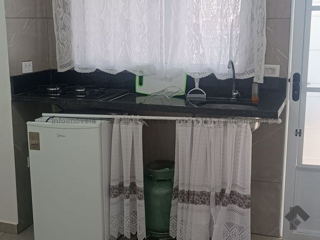 Possui cerca elétrica, concertina, câmera. Bem iluminada, com mobília atual e confortável. Somente a kitnet no terreno. Quarto separado da sala/cozinha. Jardim de inverno no quarto. Lavanderia coberta. Varanda coberta. Imóvel bem confortável.