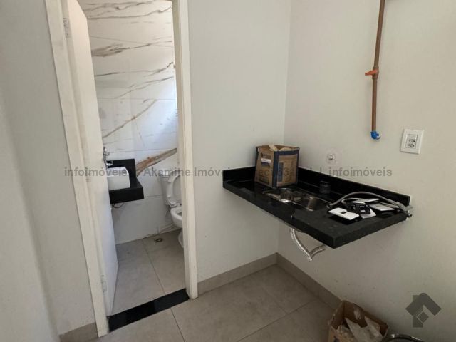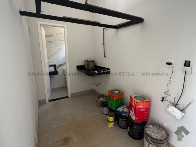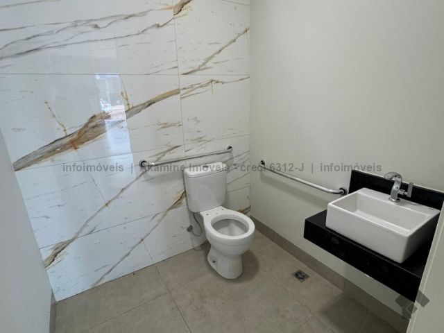 Imóvel conta com salão com 95 m², copa e dois banheiros sociais. Contém piso porcelanato acetinado, teto de gesso rebaixado, iluminação em LED, banheiros com acessibilidade, com acabamento em porcelanato marmorizado, pias de granito com cubas de sobrepor, salão sem colunas internas, preparação para três aparelhos de ar-condicionado, porta de enrolar automática e possibilidade de instalação de climatizador, tubulação embutida para instalação de alarme e câmeras de segurança, praticidade e segurança no local.