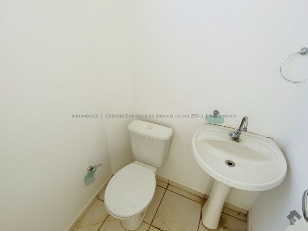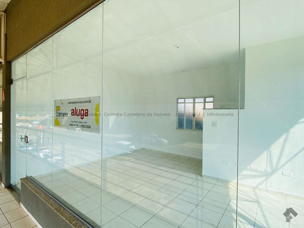 Sala medindo 26 m². WC social. Estacionamento frontal.