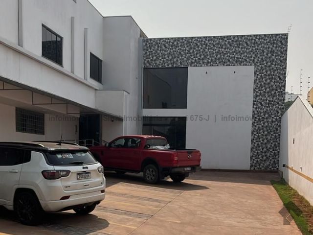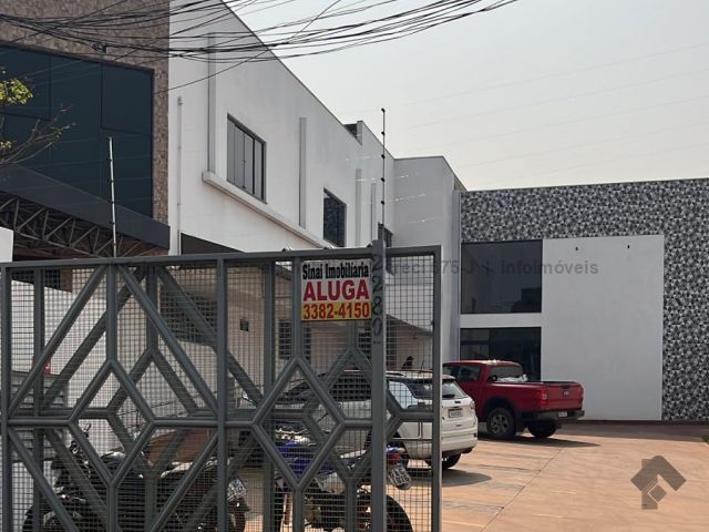 Salão comercial com mezanino, numa área de 190m², com estacionamento e dois banheiros. Vagas no estacionamento sem cobertura.