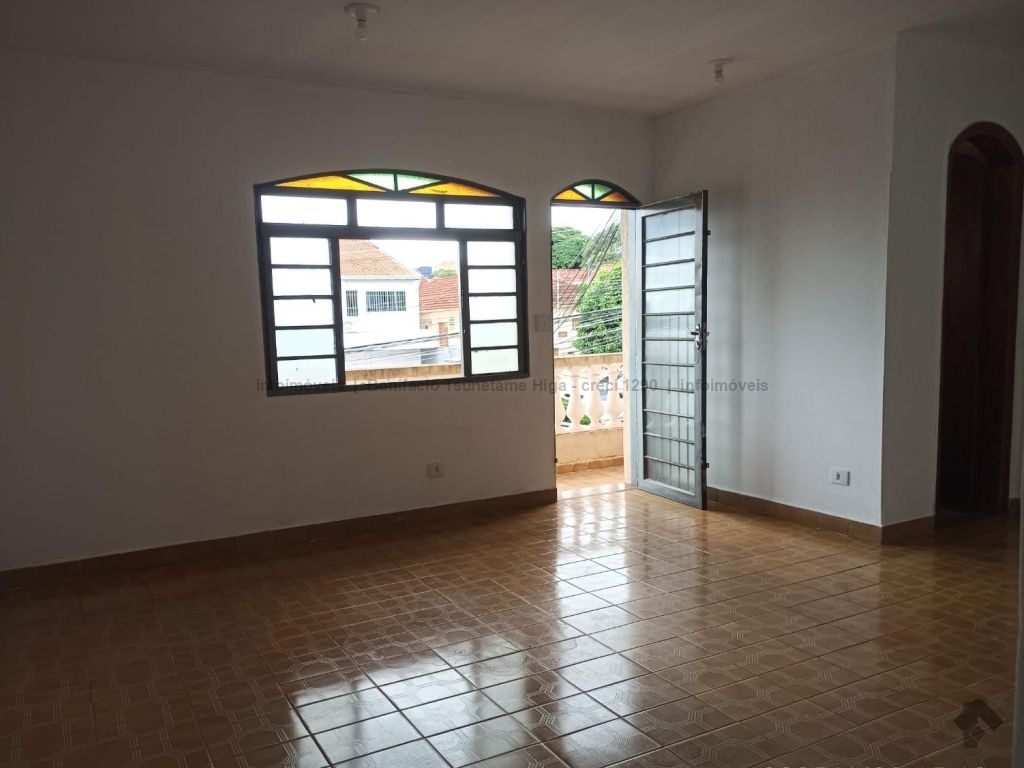 Sala ampla no piso superior, com sacada para a rua Padre João Crippa, um banheiro social e uma vaga de garagem descoberta.