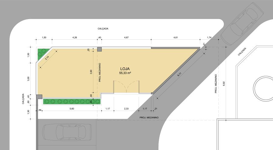 Loja externa de 55,33 m² no Hiper Center Jardim dos Estados com excelente localização, na esquina da Av. Ceará com a Rua Antonio Maria Coelho. Projeto adaptável de acordo com o seu negócio, pé direito duplo com possibilidade para construção de mezanino. Acesso interno pelo estacionamento do empreendimento.