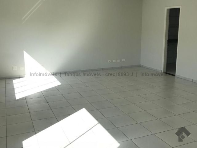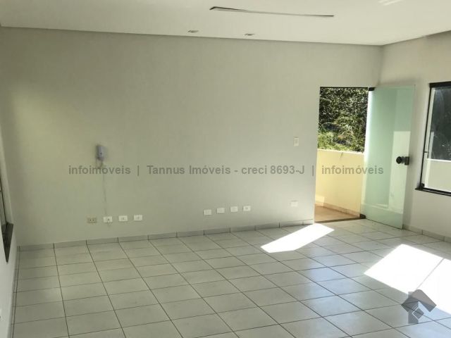 Sala comercial em condomínio fechado com vitrines voltadas para a rua, amplo espaço com banheiro e copa.