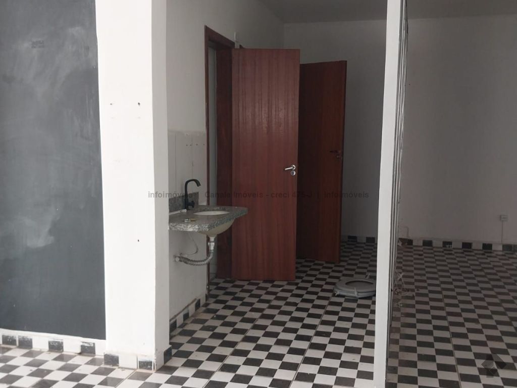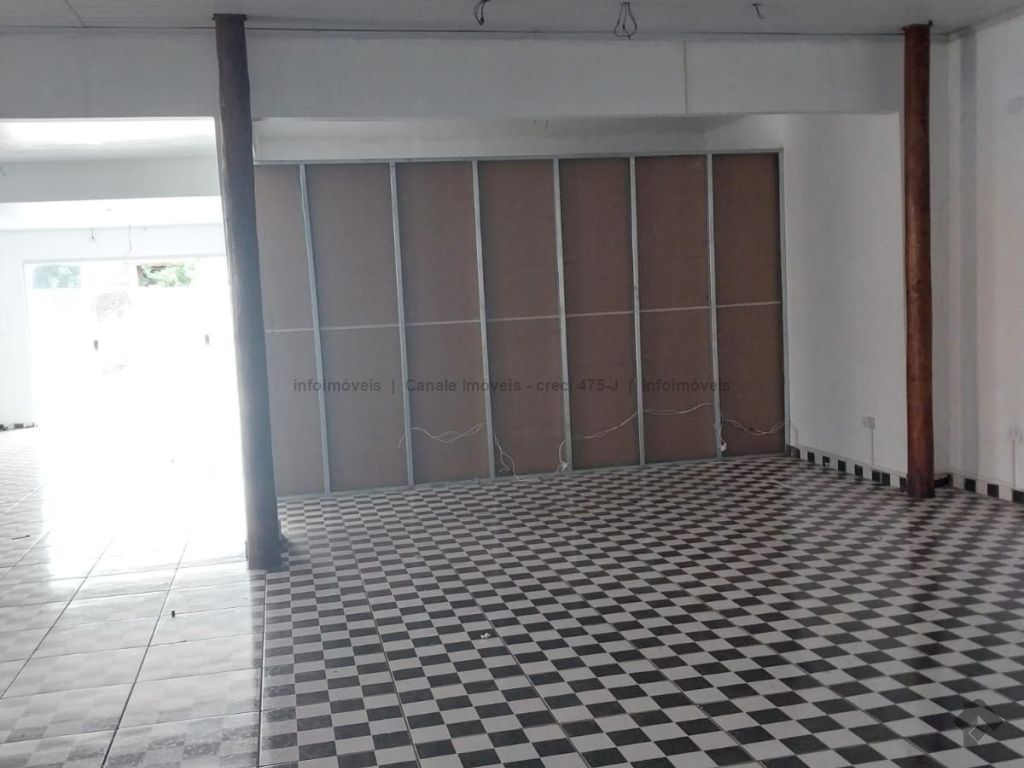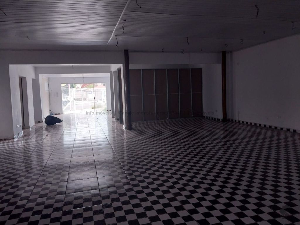 Salão comercial com 78 m² e amplo estacionamento, contendo 1 salão grande, 1 sala menor, 1 sala com lavatório e armário, copa com armários, 3 banheiros e mezanino.