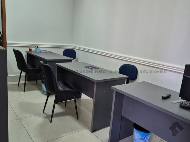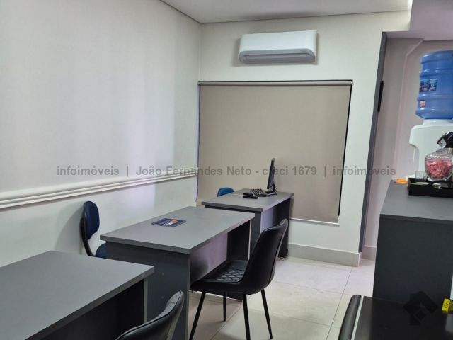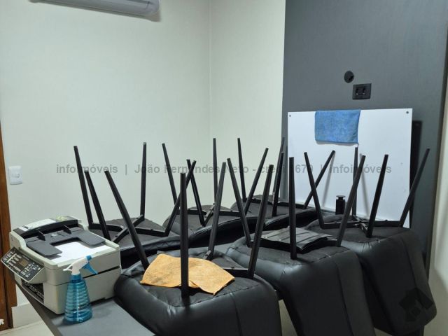Excelente localização, duas salas. Uma sala está com 3 mesas e cadeiras, armário, bebedouro de água, geladeira e ar-condicionado. A outra sala com mesa de reunião com 6 cadeiras, ar-condicionado, área de serviço com churrasqueira.